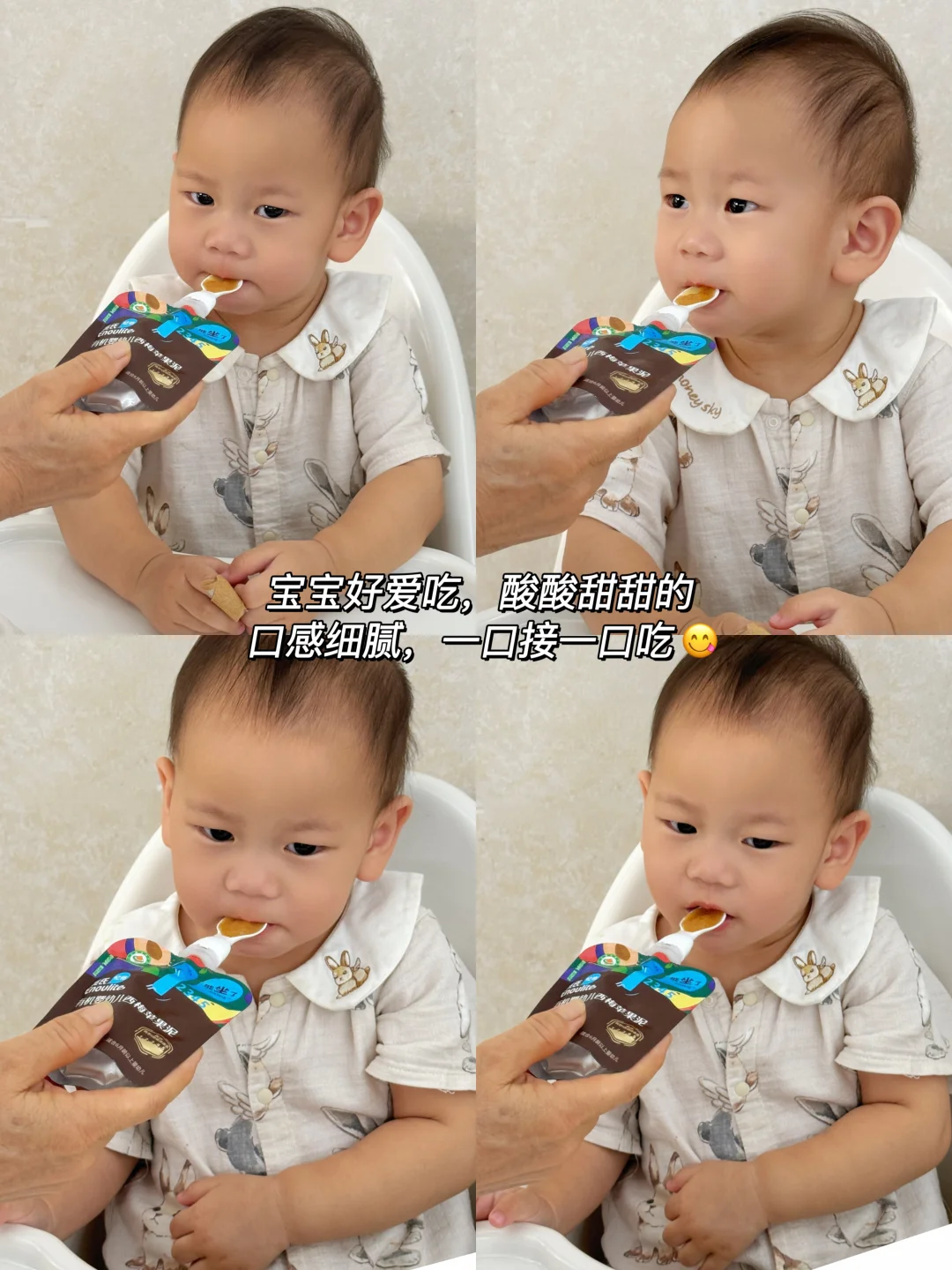 果泥的酸甜味道要适中,宝宝接受度更高。适中的颗粒感和浓稠度可以锻炼宝宝咀嚼、吞咽能力