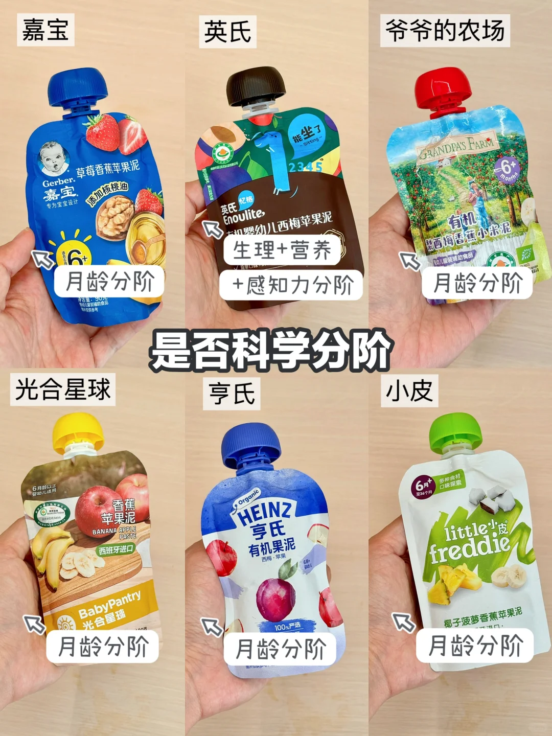 宝宝在不同的成长阶段需求不同,根据宝宝的发育情况进行分阶的果泥,能够针对性地去做营养配比,喂养更科学