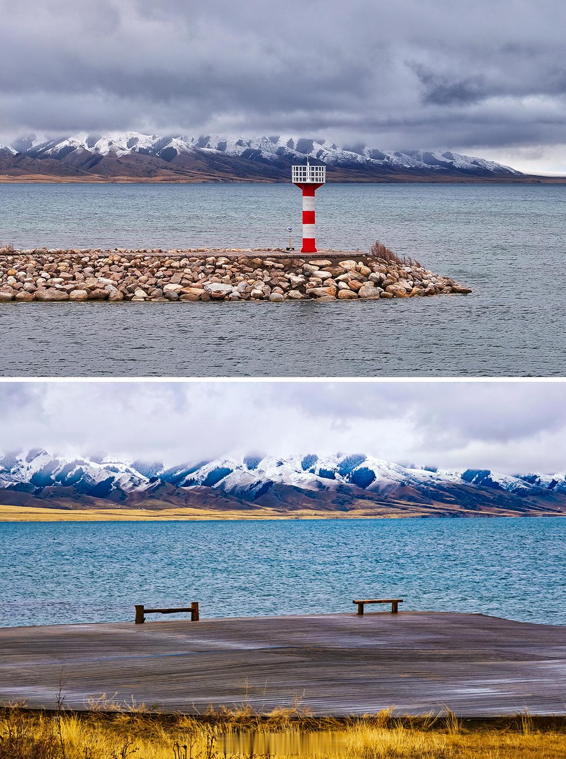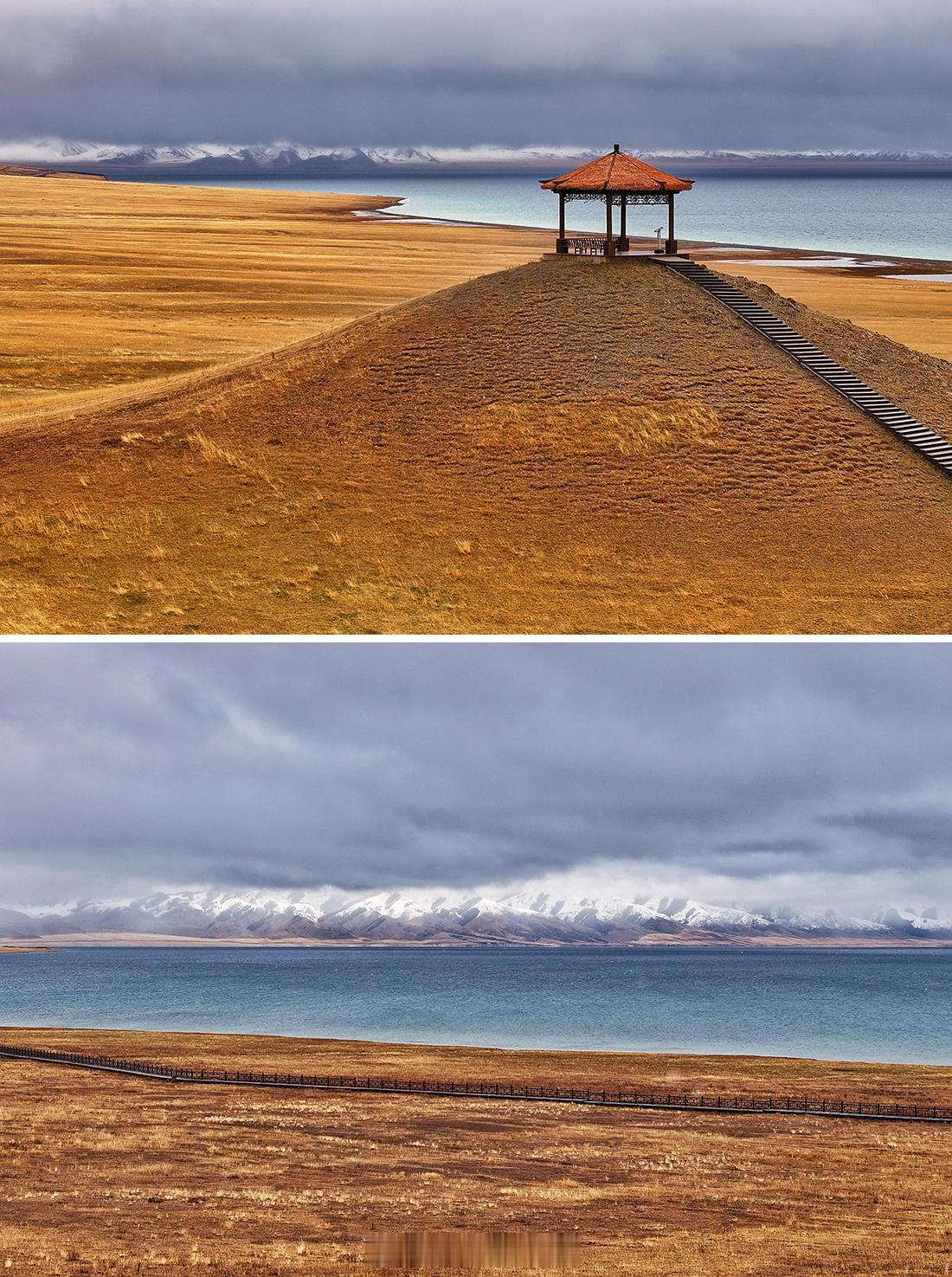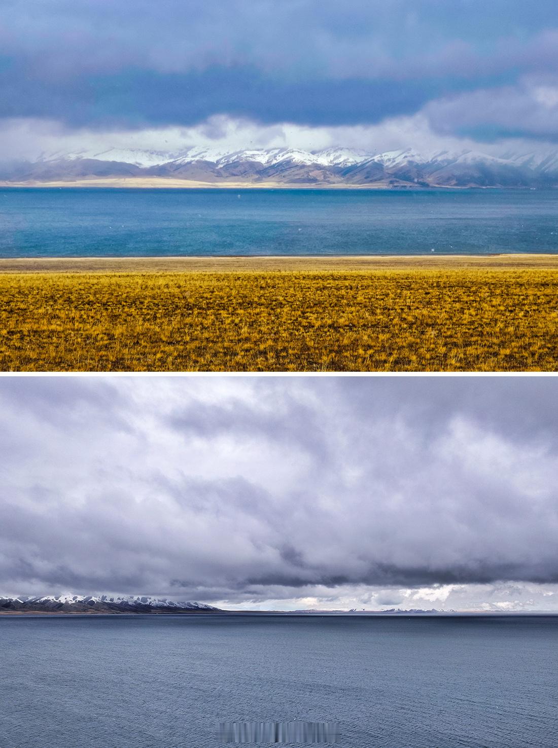 金色草场,白色雪山和蔚蓝大湖形成了最美的色彩配搭,这样的景致是如此不同,也透露着别样的美好!