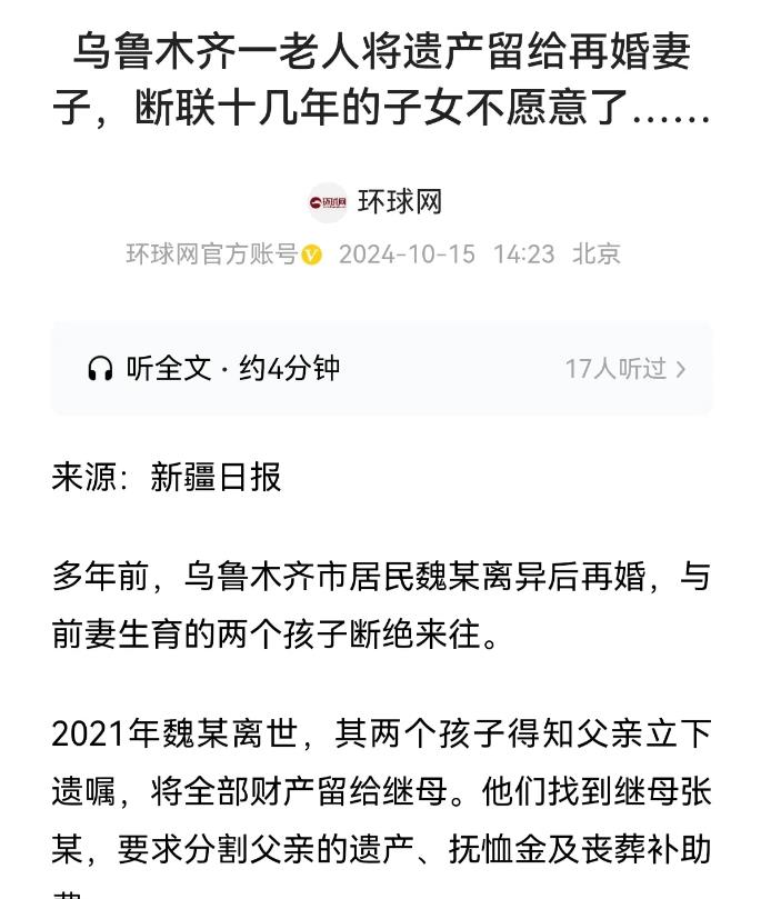 乌鲁木齐,男子离婚后,与前妻生的2个孩子跟他没有了任何的来往。十多年后,男子去世,一双儿女找上门来,要求分得遗产,可继母却表示:自己照顾老伴十多年,2个孩子从未尽过赡养义务,连葬礼都没有出席,凭什么分遗产?法院这样判了。