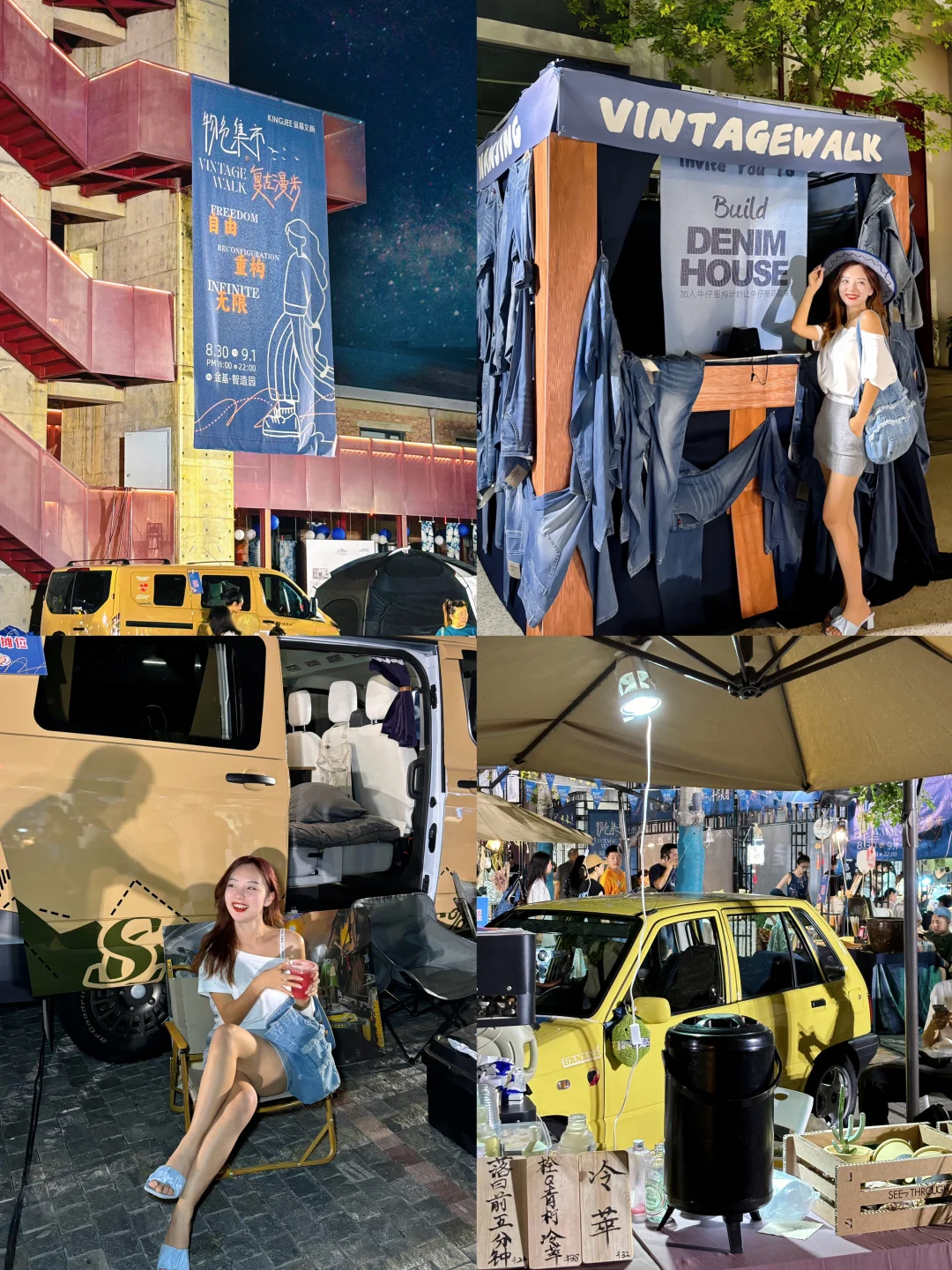 在夏日晚风里 发现了复古牛仔文化市集 就在双创园!! 现场超有趣!快来玩! ✔️好玩推荐: ✨好多有意思的创意摊位~都很有特色! 吹着晚风 逛着市集 真的很惬意 ✨靛蓝染展: 蓝色主题染展,很有在云南的感觉 ✨集章领礼物: 寻找制定摊位,集齐10个盖章,就可以get 牛仔布包(免fei的!) ✨live演出:晚上有现场的live演出~就在咖啡车门口的位置,晚上去的时候正好在唱陈粒的走马,真的很有音乐节现场的cill感