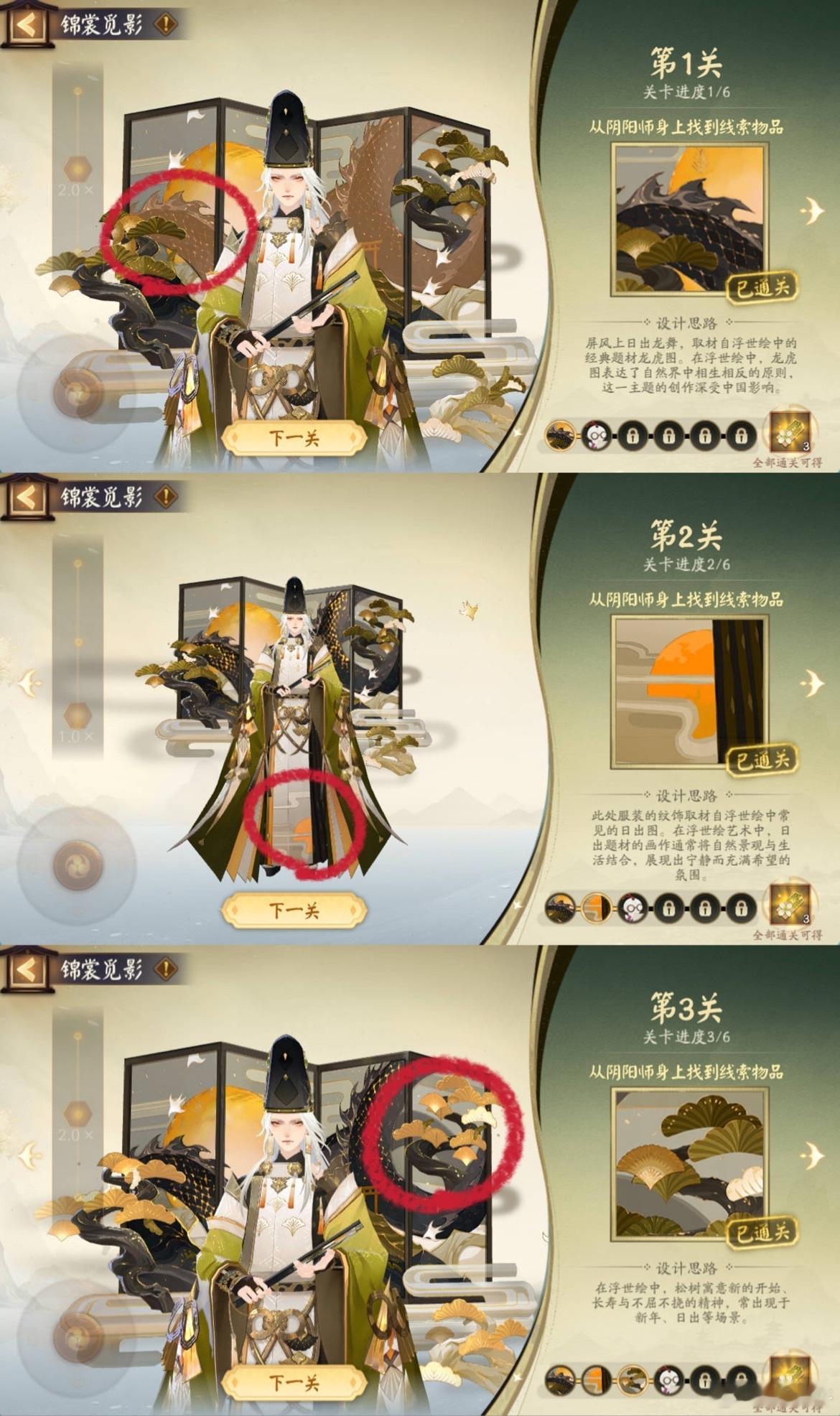 点开后找到6个指定区域,即可领取3张【金桂锦札】