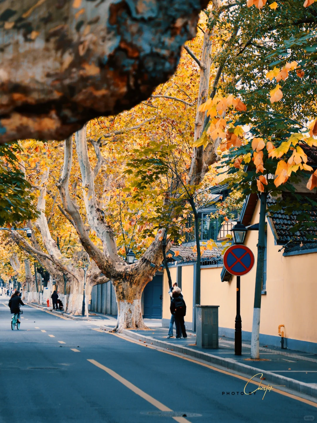 P4梧桐大道:参天的梧桐树,满目金黄。如果早来可以等到丁达尔光,整个纵深感好出片🍂
