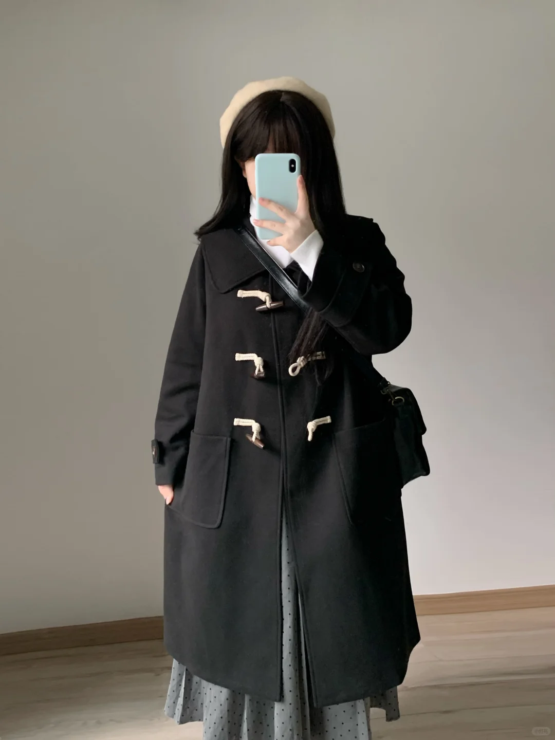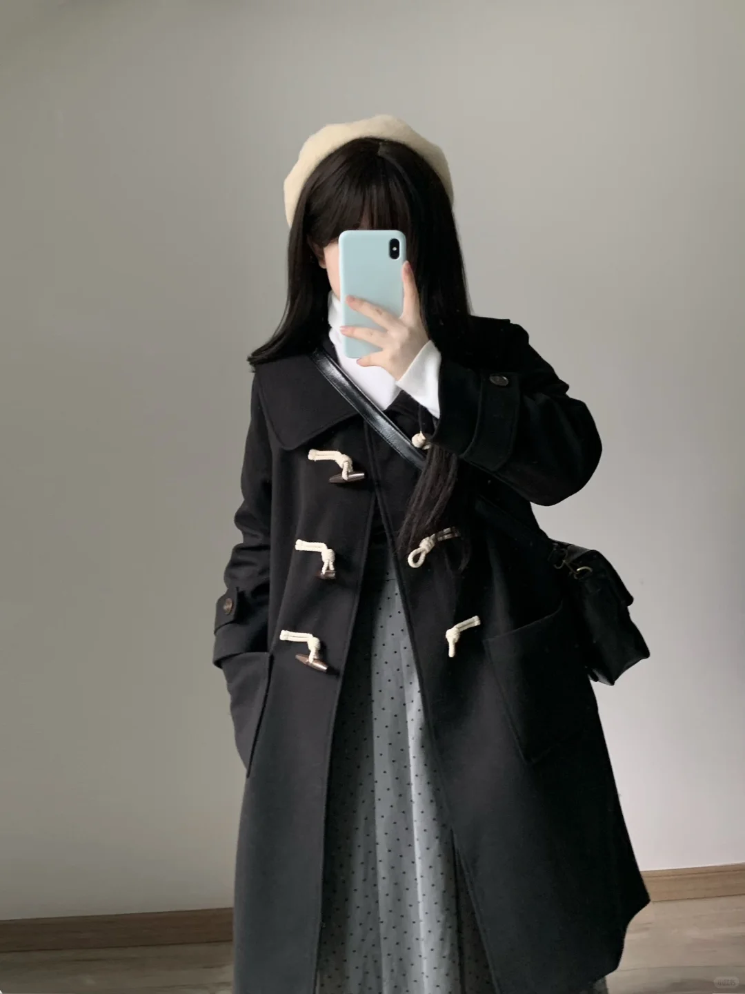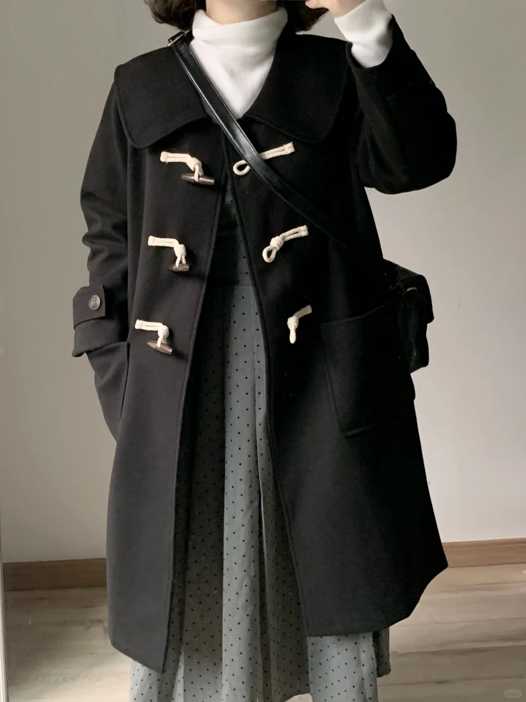 160120|日系乖巧少女感💗娃娃领牛角扣大衣
