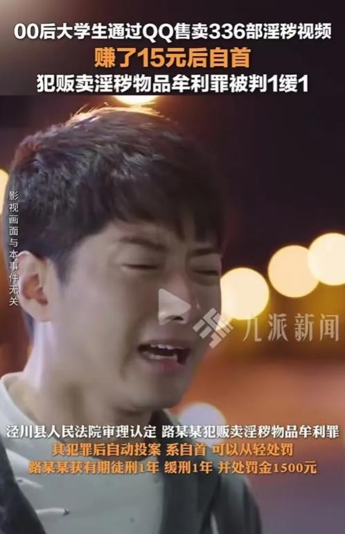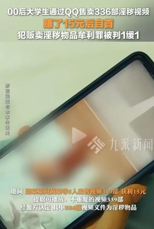 甘肃,00后大学生通过 QQ 群购买带有淫秽视频的聊天记录,然后以3元500部的价格,转售给其他人。前后一共销售5次,共获利15元。他意识到不对后主动自首,本以为警方会网开一面,万万没想到,却被认定为犯罪,还被法院判处有期徒刑1年,缓刑1年,并处罚金1500元。公安机关:售卖的信息中,有336部淫秽视频!