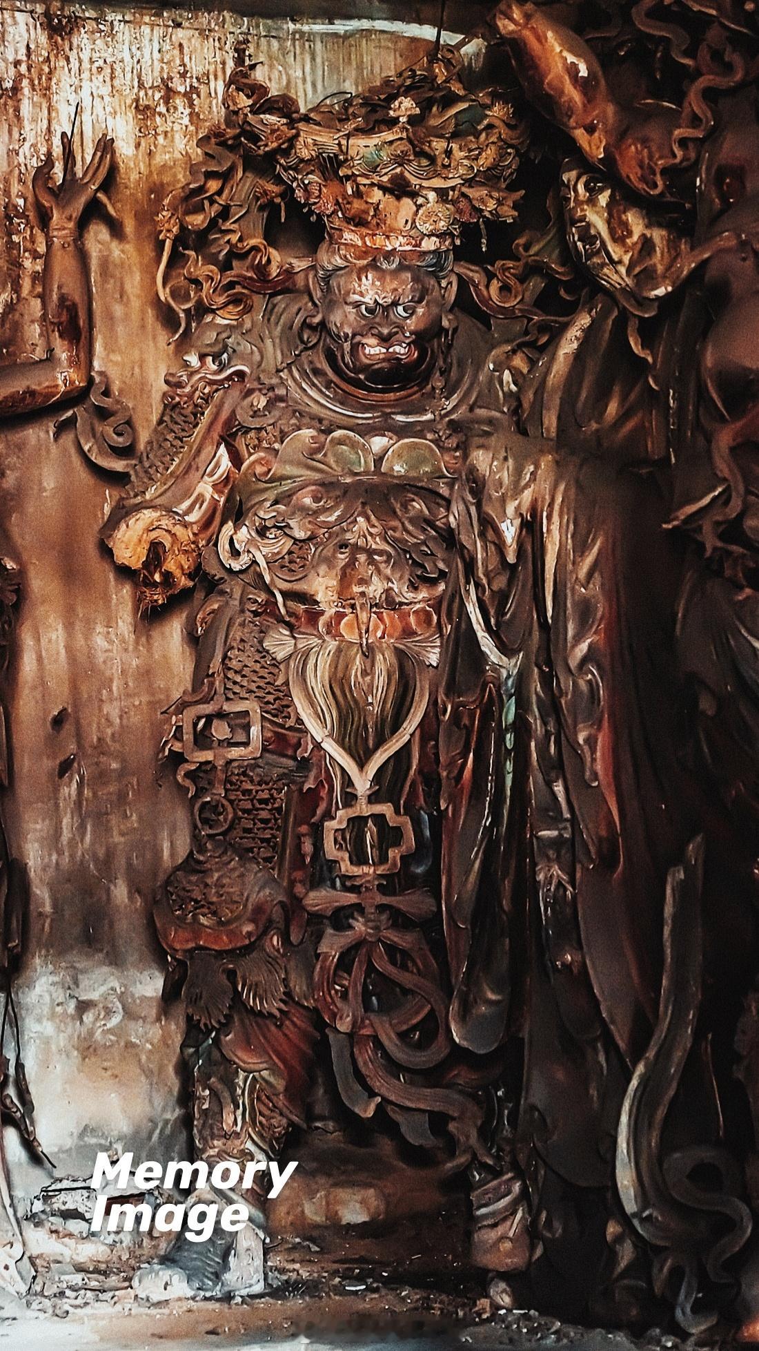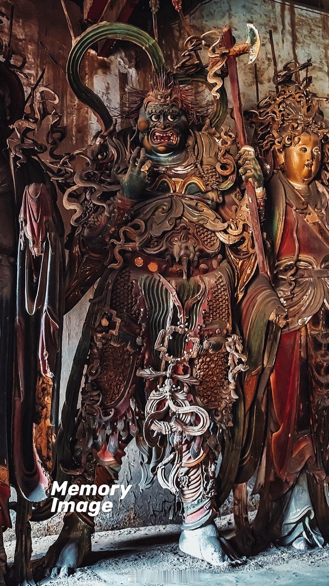 看一眼少一眼的超大号泥人儿,三四米高,身体微倾,色彩华丽,每一尊的装备都至繁至美,超强的压迫感真是扑面而来,一轮五个游客,每人观赏时间限定三分钟左右,时间似乎从未如此短暂,纵使我快门如飞,咔嚓记录,所以你完全可以不用亲自到来,看我的图比现场还更好些[嘻嘻]
