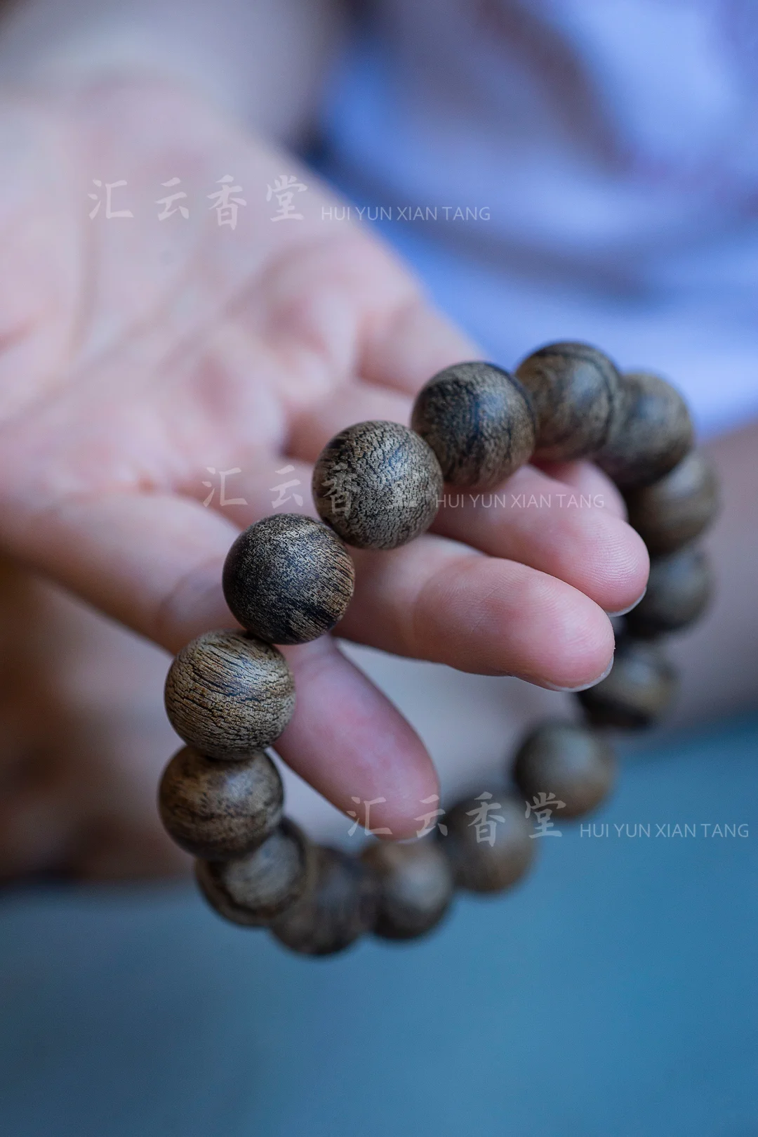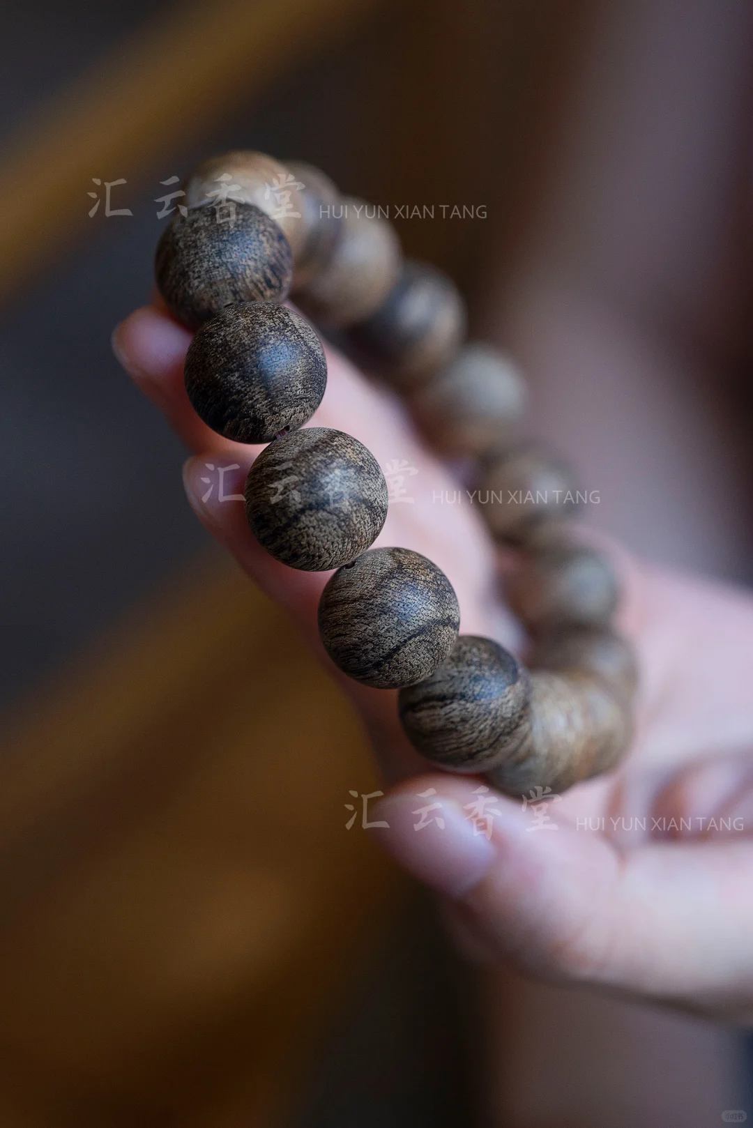 老惠安沉香手串,天然本色就是帅15mm手串,漂亮的纹理 独一无二,浓郁的花香果香,香韵变化丰富有层次