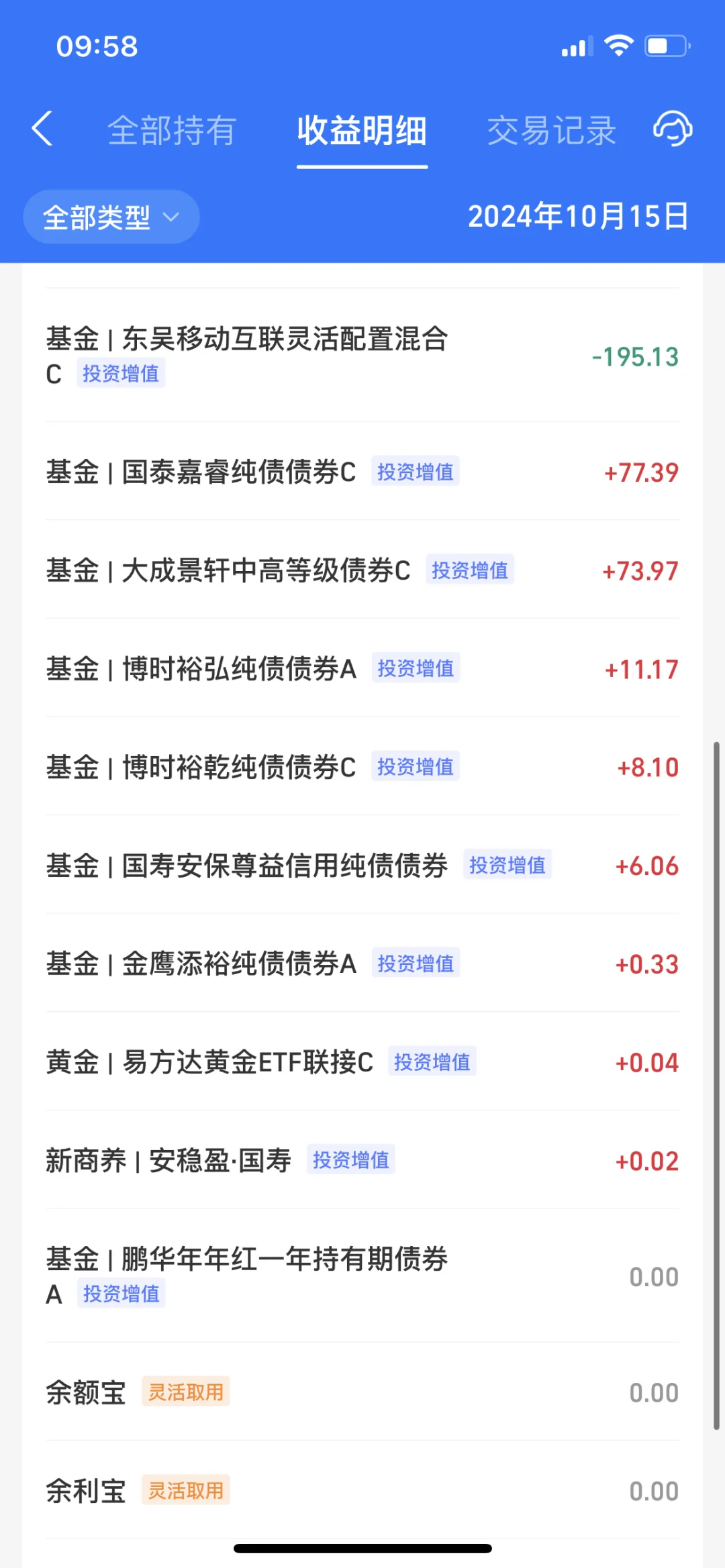 我的理财日记 混债真的起伏波动太大,把一个号的收益跌没了, 最近信用不错,今天利率开局不怎么样, 反正全加满仓了,随缘涨跌~