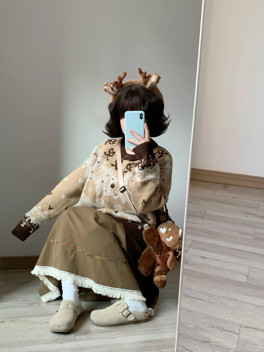 记录吧就现在 棕色系穿搭 慵懒感穿搭 甜妹穿搭 微胖穿搭 费尔岛毛衣 毛衣 毛衣搭配