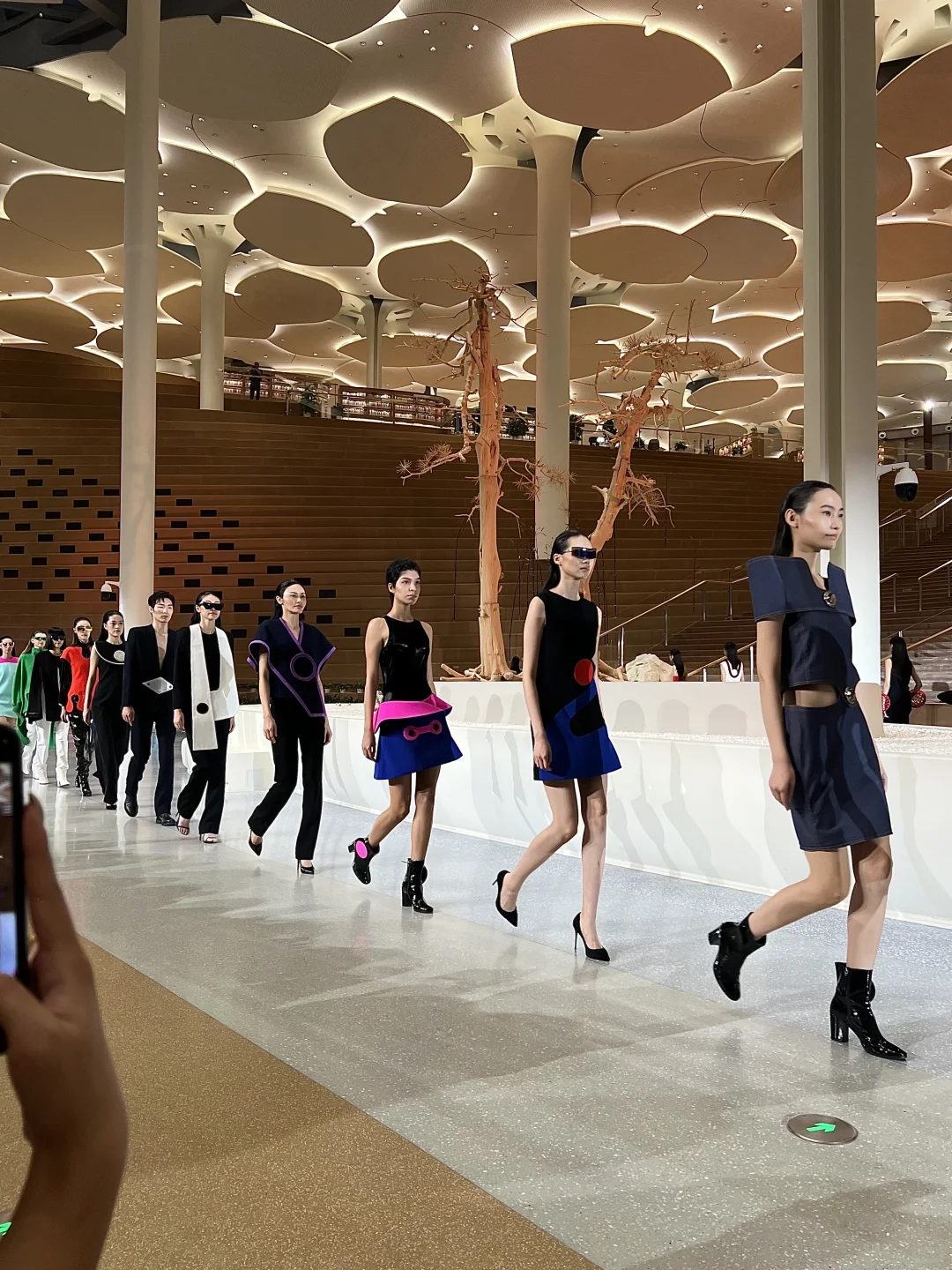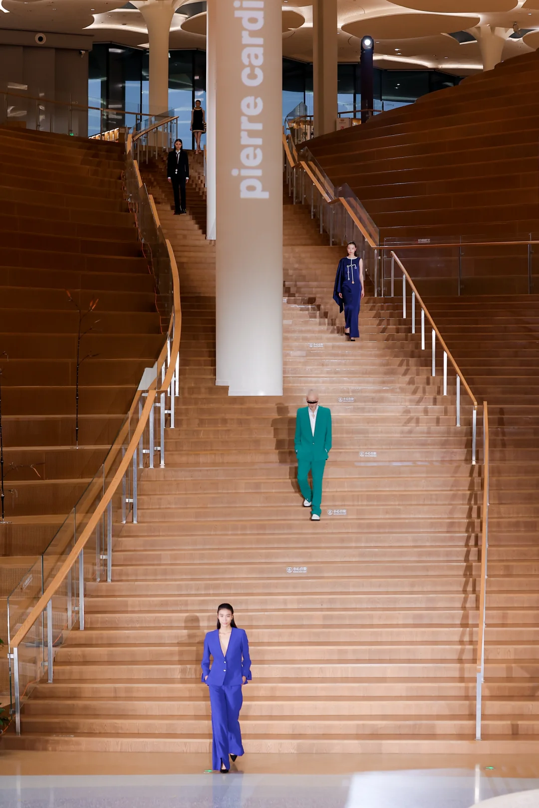 这次秀场主题是皮尔卡丹2025春夏系列,场地是北京城市图书馆。