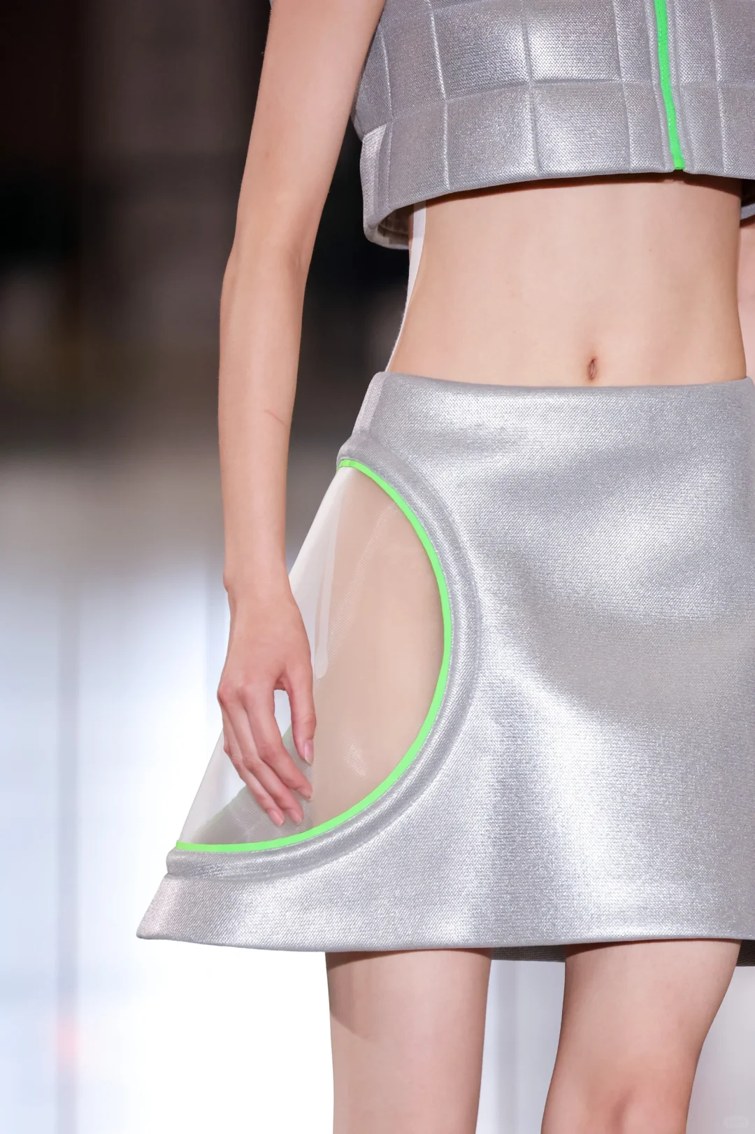 这次秀场的服装以“海洋🌊”为设计灵感,高饱和度和撞色设计大胆先锋,加以立体剪裁及特殊面料的结合,重现60s的Cosmocorps经典宇宙服风格。