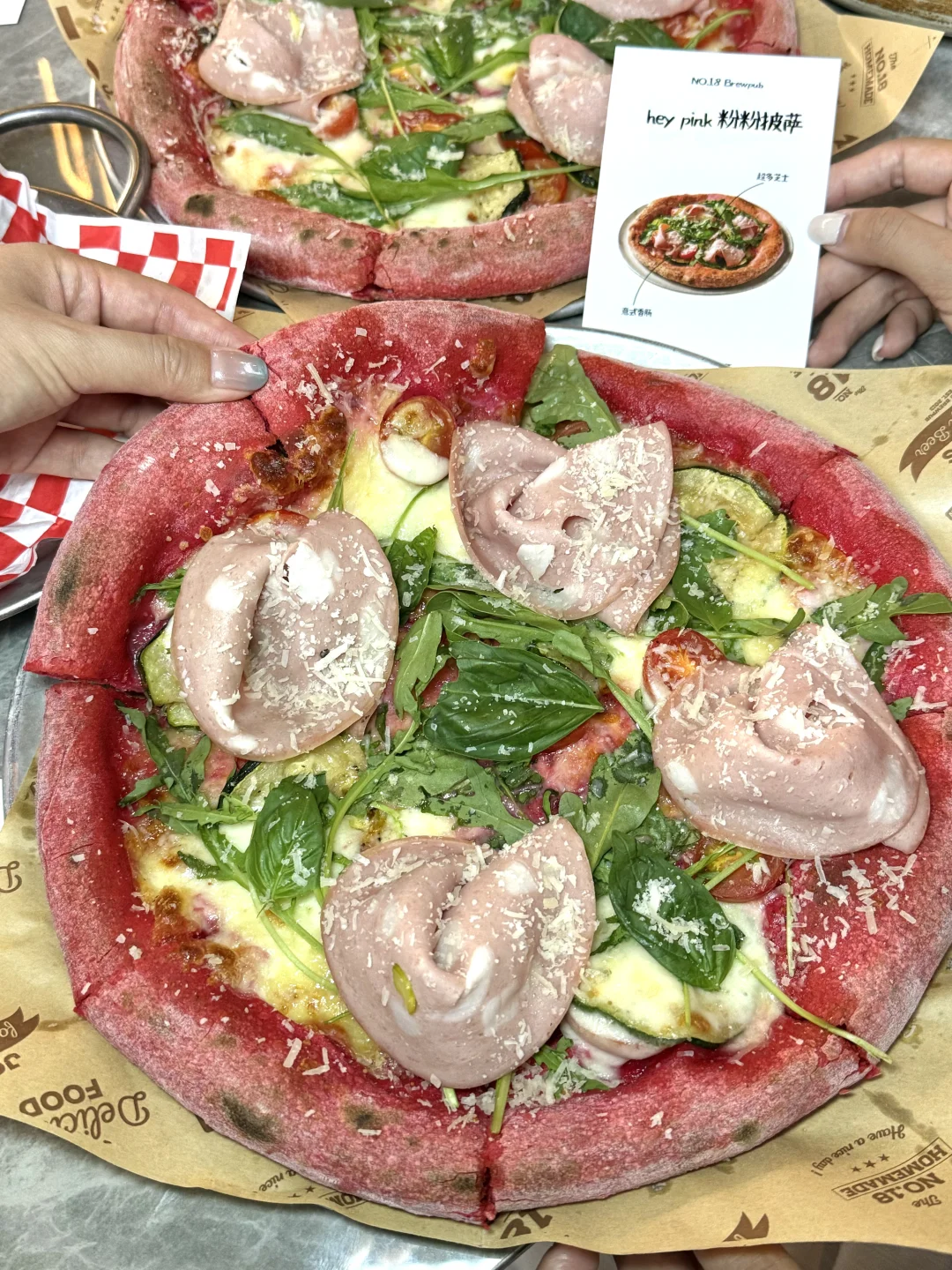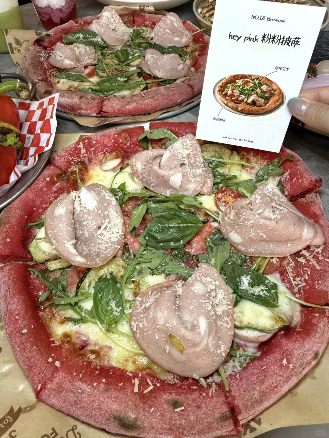 真的好爱这家小酒馆,精酿好喝菜品也好好吃。 彩椒爆汁牛肉堡,多汁又清爽。 Hey pink 粉粉披萨,粉色披萨我真的好爱!!