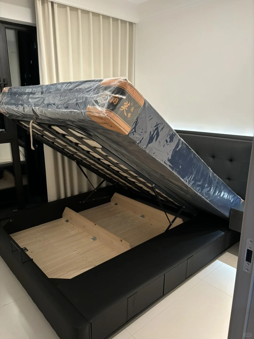 自从换了储物床,换季的床品、衣服全都能塞进去,收纳空间堪比大半个衣柜!选购时还特地选了侧边带3个隐形抽屉的,可以用来存放日常用品和小物件,拿取很方便!而且箱框底部带有离地5cm的底板,不用担心返潮~