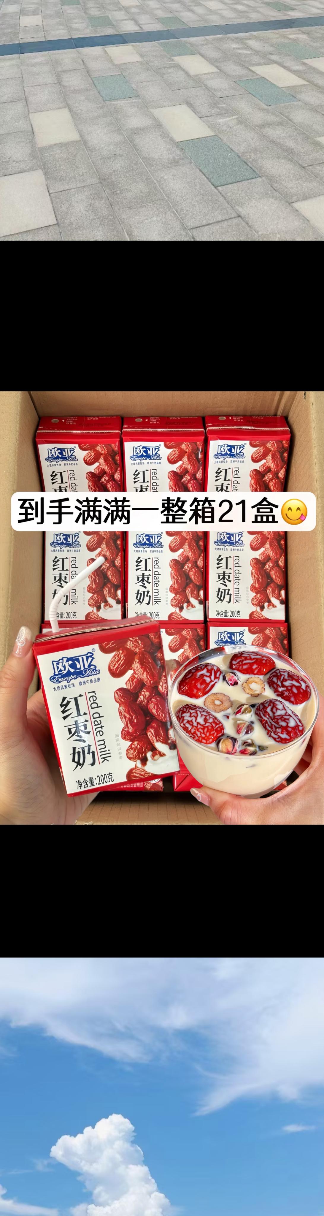 信我!欧亚红枣牛奶喝一次就爱上!欧亚新出的盒装红枣牛奶,这个价到手一箱21盒,浓郁的牛奶搭配香甜的枣汁,口感丝滑细腻,满嘴的奶枣香,加热后比卖的烤奶还要好喝,真的奶哭了啊!女孩子一定要多多喝它!