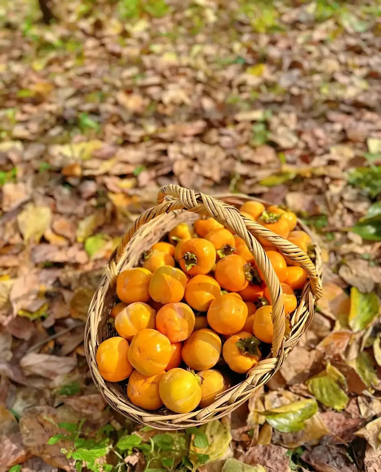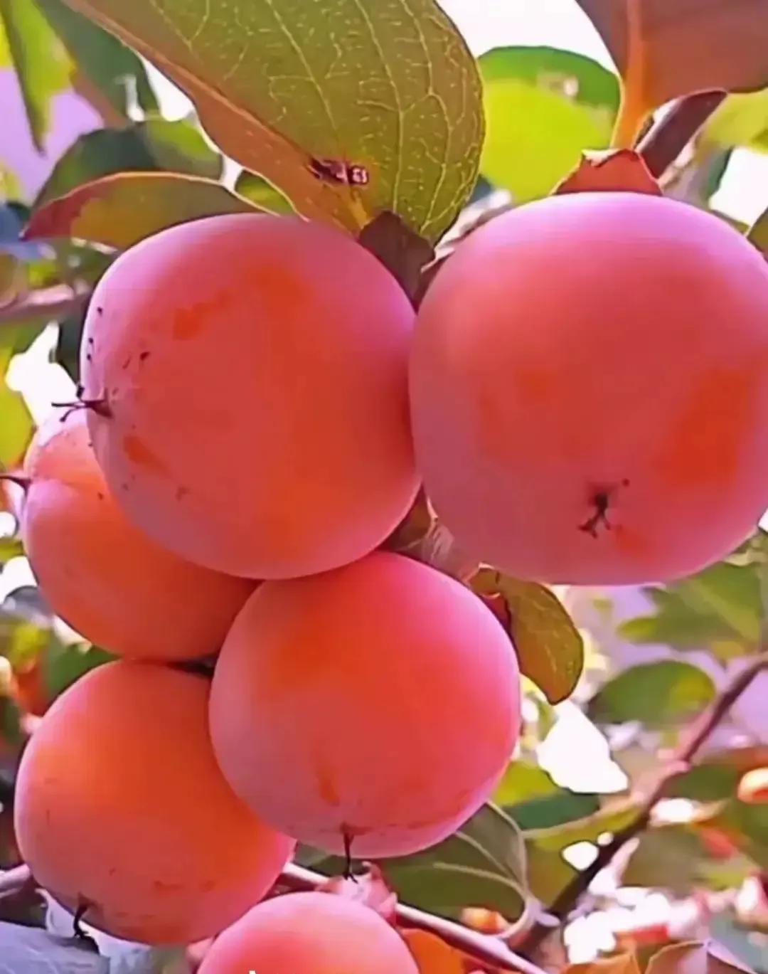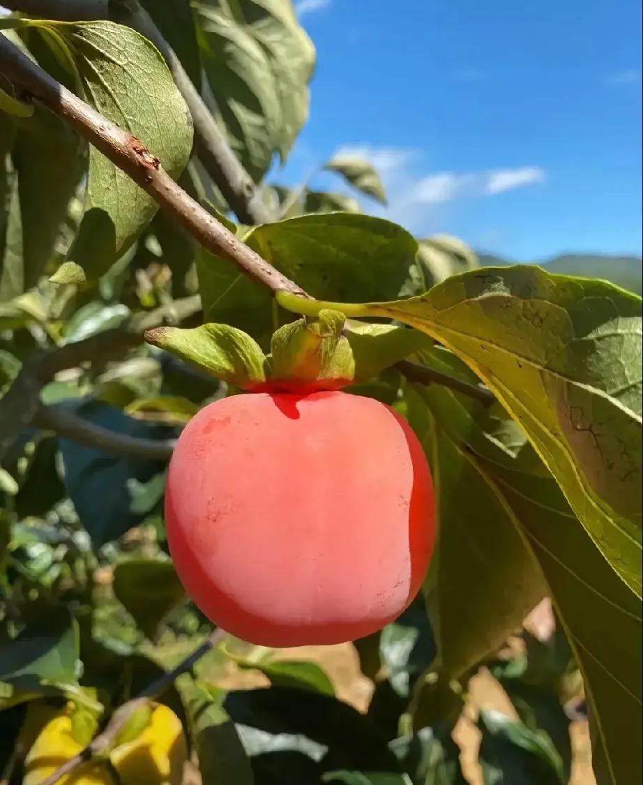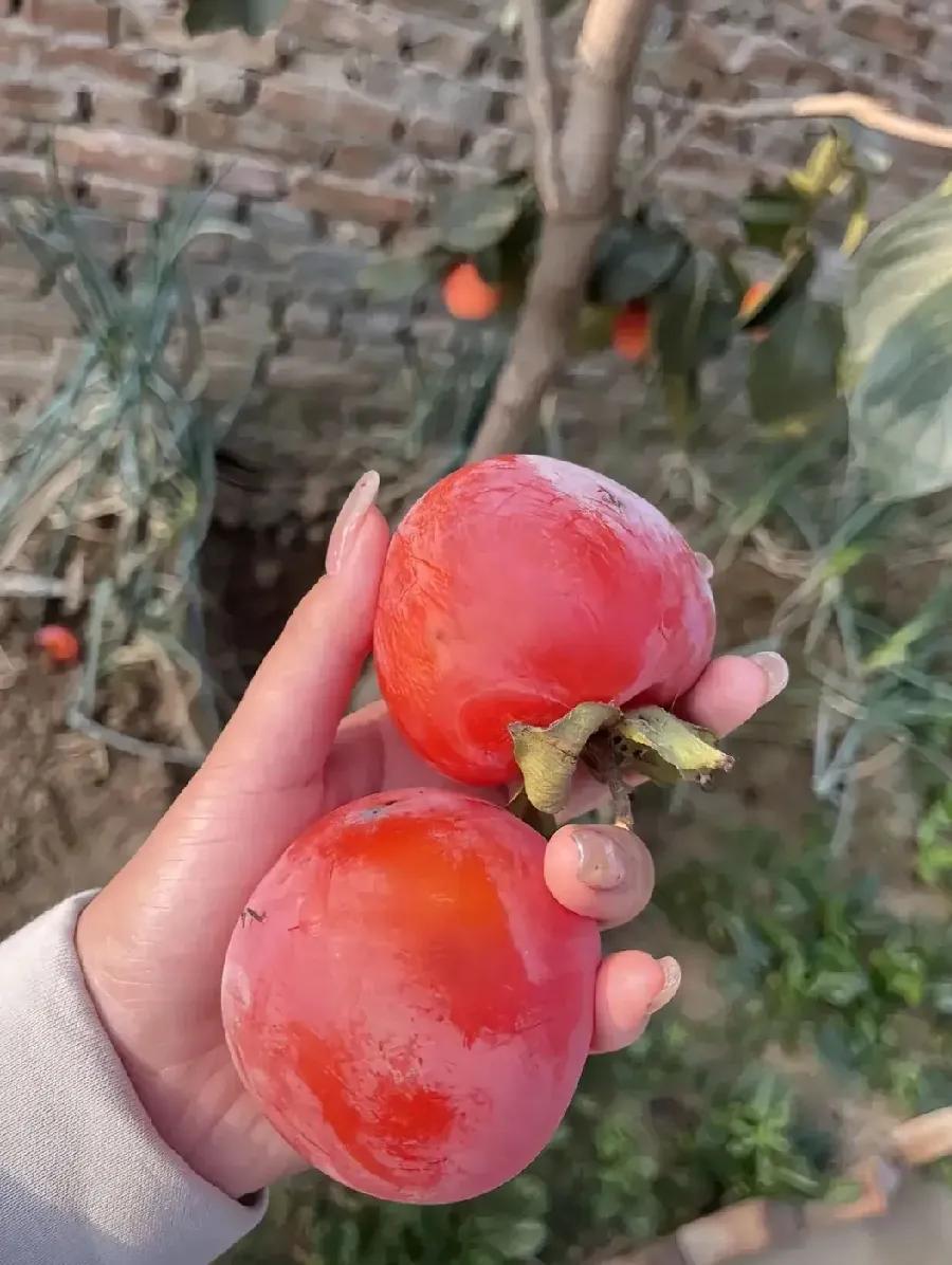 树上自然成熟的柿子那叫一个红!摘下来微软尝一口~甜到心里了