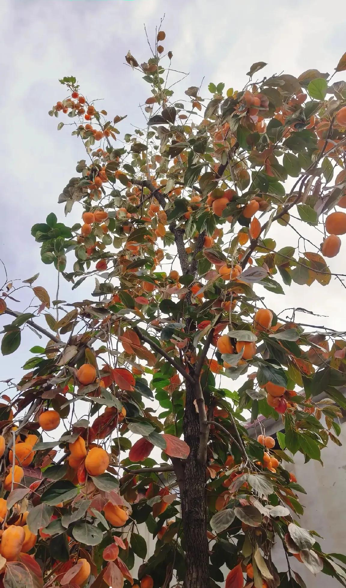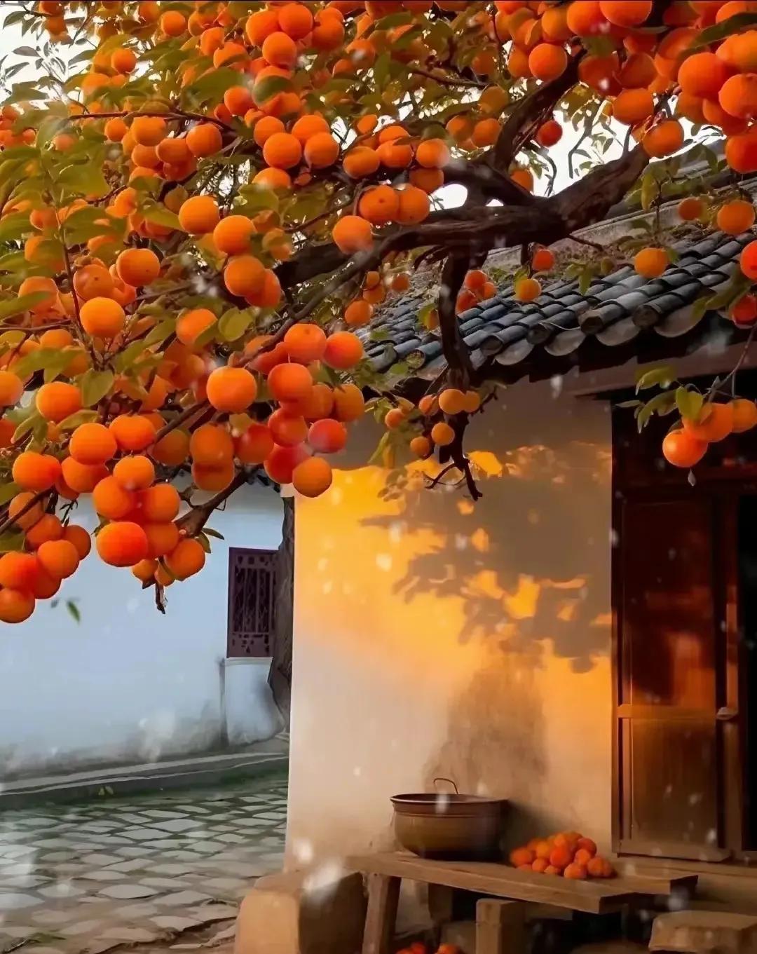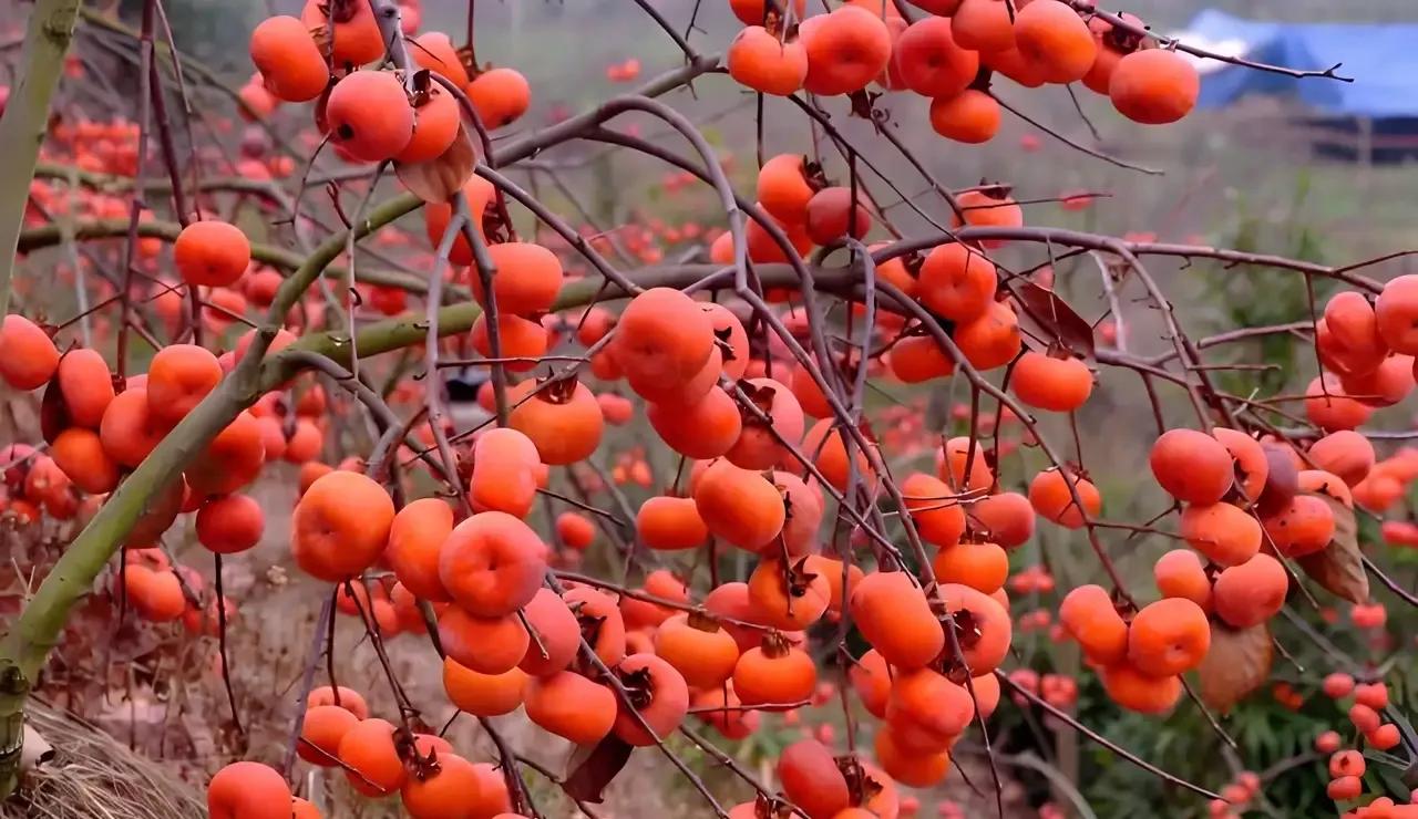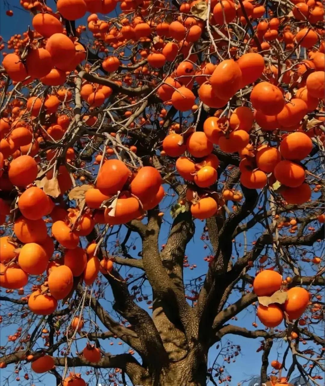 树上自然成熟的柿子那叫一个红!摘下来微软尝一口~甜到心里了