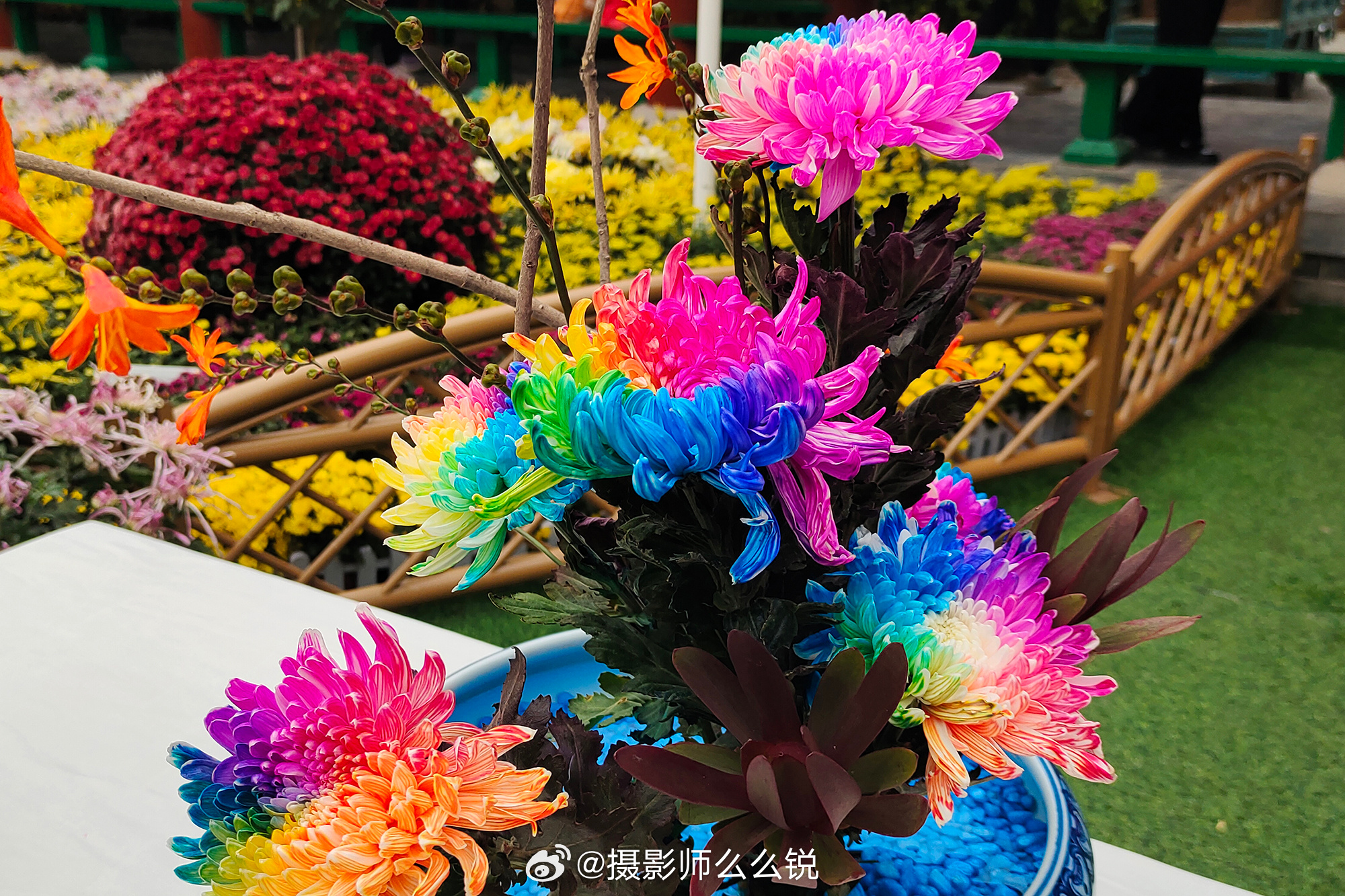 你见过七彩色的菊花吗?我是没见过。这花哪里有,开封的清明上河园啊!就凭这朵花,我也一定要去打个卡看一看!金秋的开封清明上河园,即将呈现一幅绚烂多彩盛大震撼的菊花画卷!第十三届国际菊花展在这里隆重开幕,百万株菊花争奇斗艳,姹紫嫣红,简直是大自然最得意的杰作。来自12个国家的800种菊花品种,将会让每一位到来的看官大开眼界,啧啧称奇。