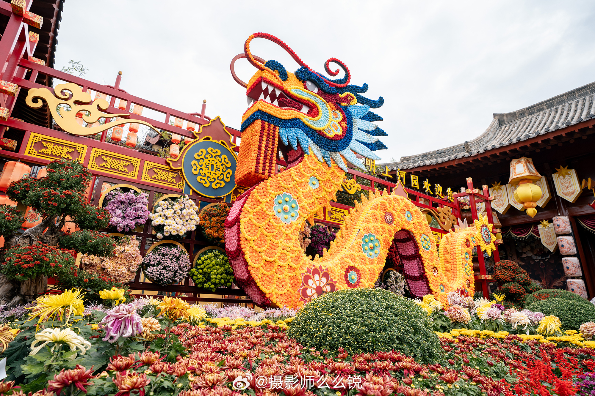漫步丹台宫,8大菊花展馆精彩纷呈,有中式的雅致,有欧式的浪漫,有可爱卡通,有龙飞凤舞,有大红灯笼高高挂,用菊花创意打造的造型千姿百态,一步一美景,一眼一惊艳,完全置身于花的海洋!