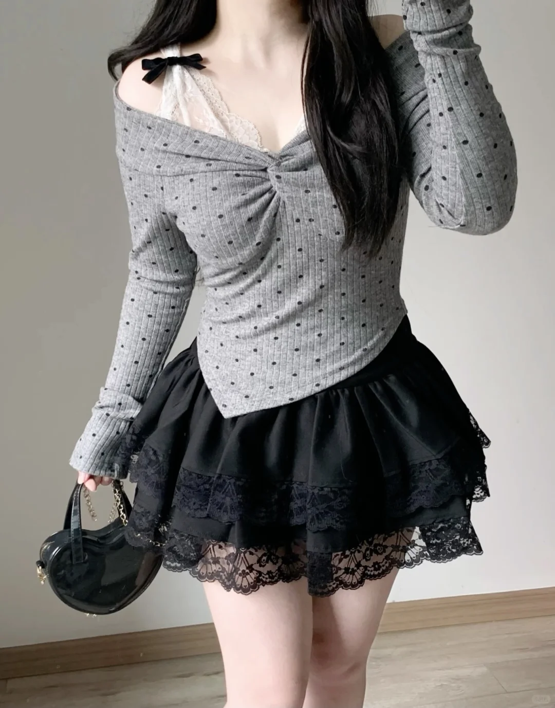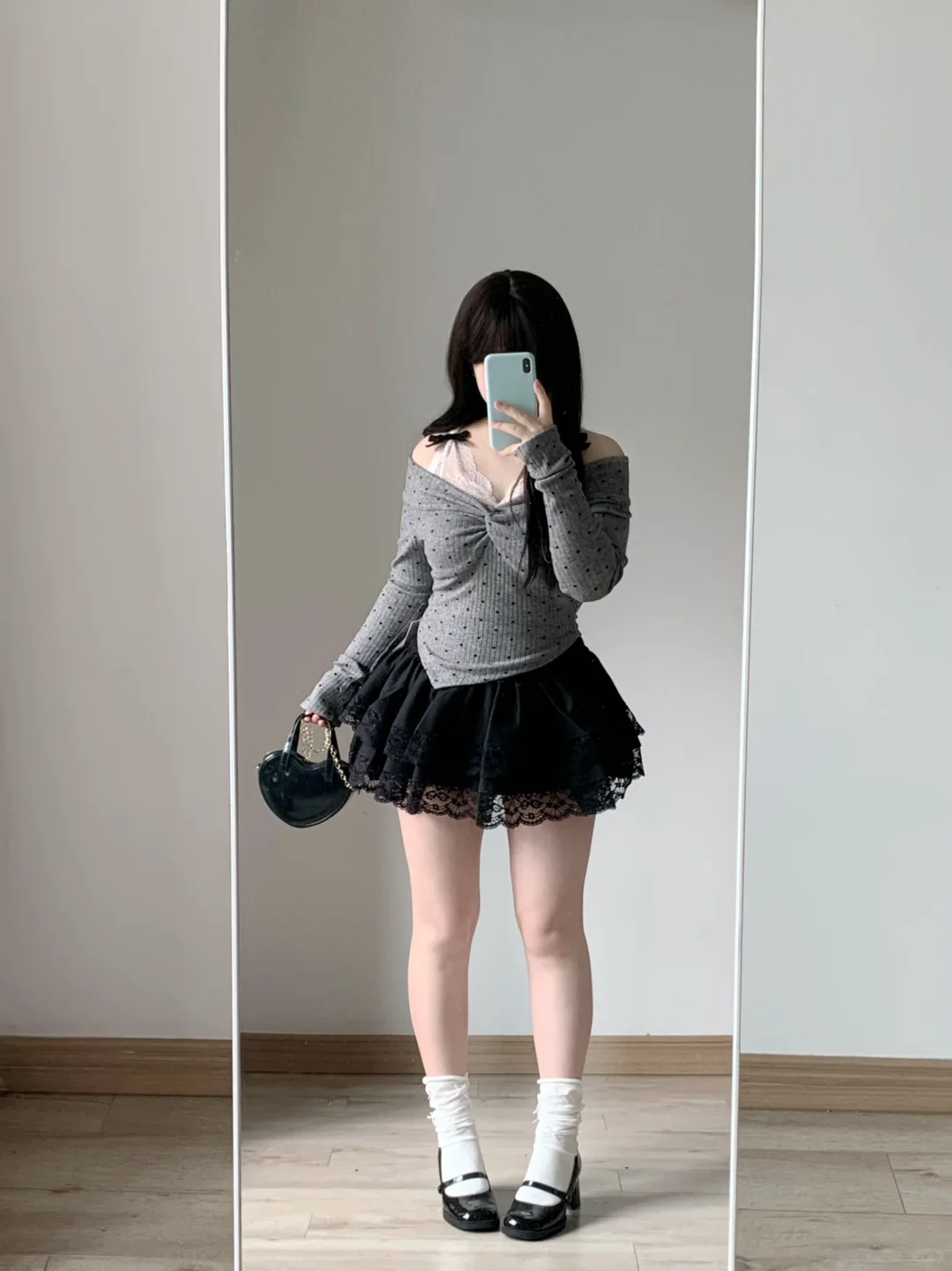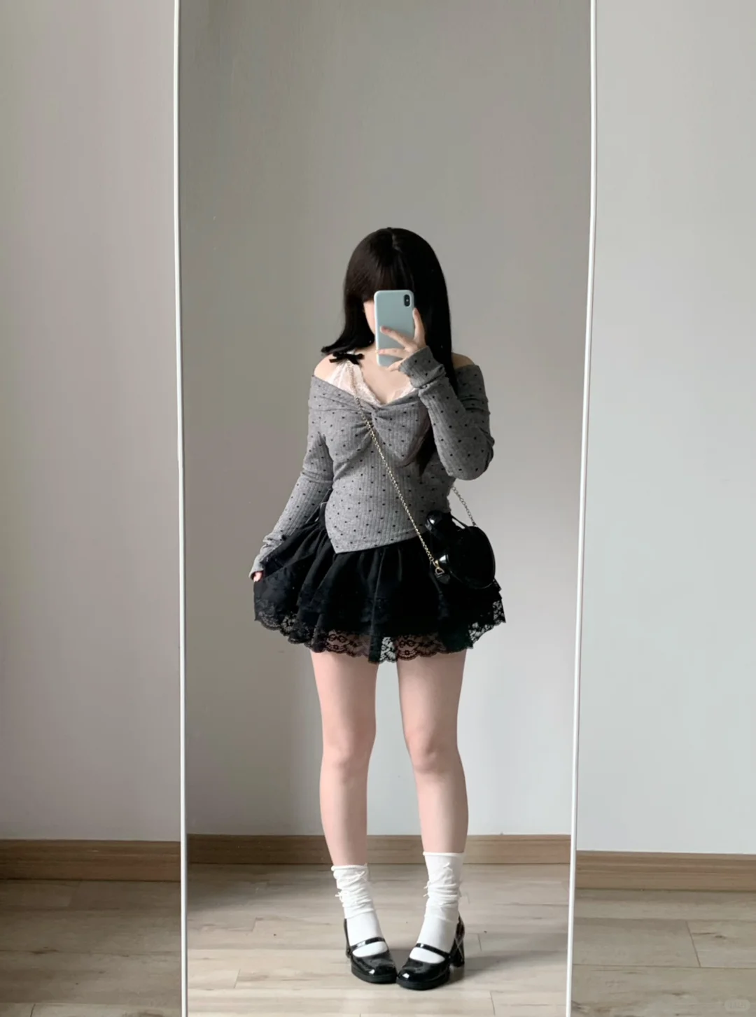 160120|微胖甜妹显瘦约会穿搭🐈⬛漏肩毛衣