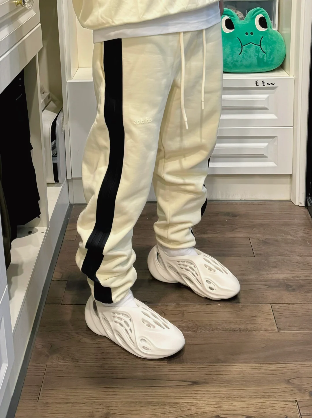 -奶油色系一直是FOG的老配方,相比第二季的米白,实物偏黄,穿起来奶敷敷的赶脚 . -黑白条非常醒目,刚好侧条纹也是阿迪标志性logo,于是一拍即合,巧妙的设计细节 . —————— . ✏️本人178cm75kg 球鞋尺码265mm(正常EU42) . 💭以上均为我个人观点,不喜勿喷,欢迎讨论。