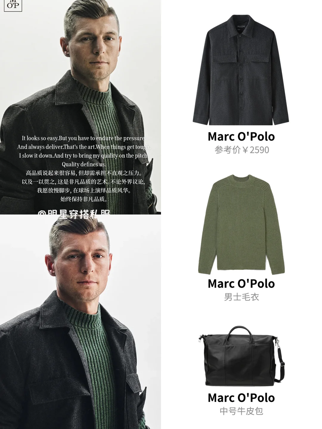 而当Marc O'Polo牵手克罗斯,是时尚与体育的碰撞融合,时尚不仅仅是外表的光鲜,更是深厚内核的真实体现。