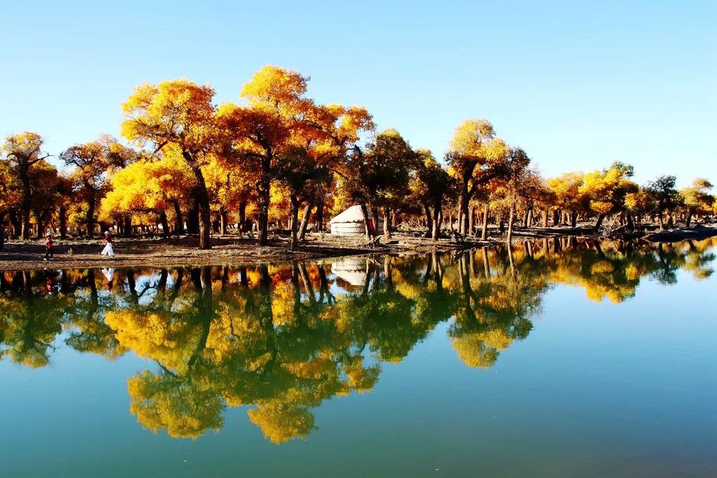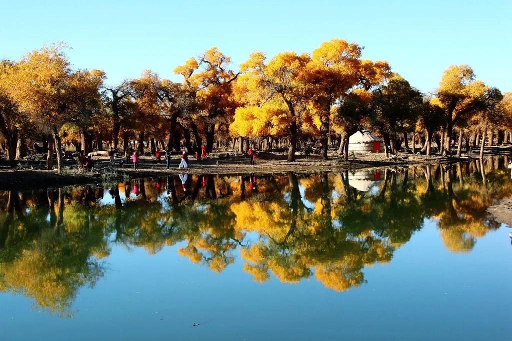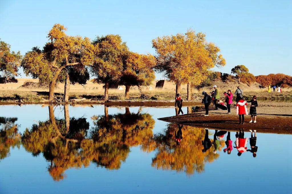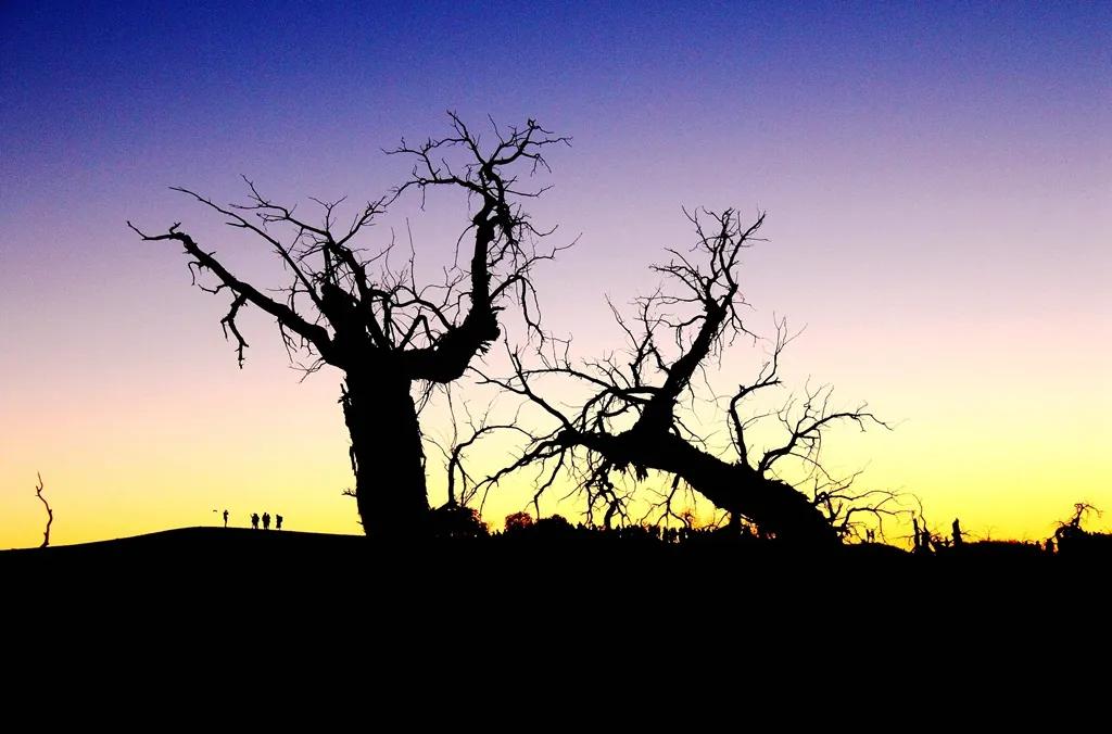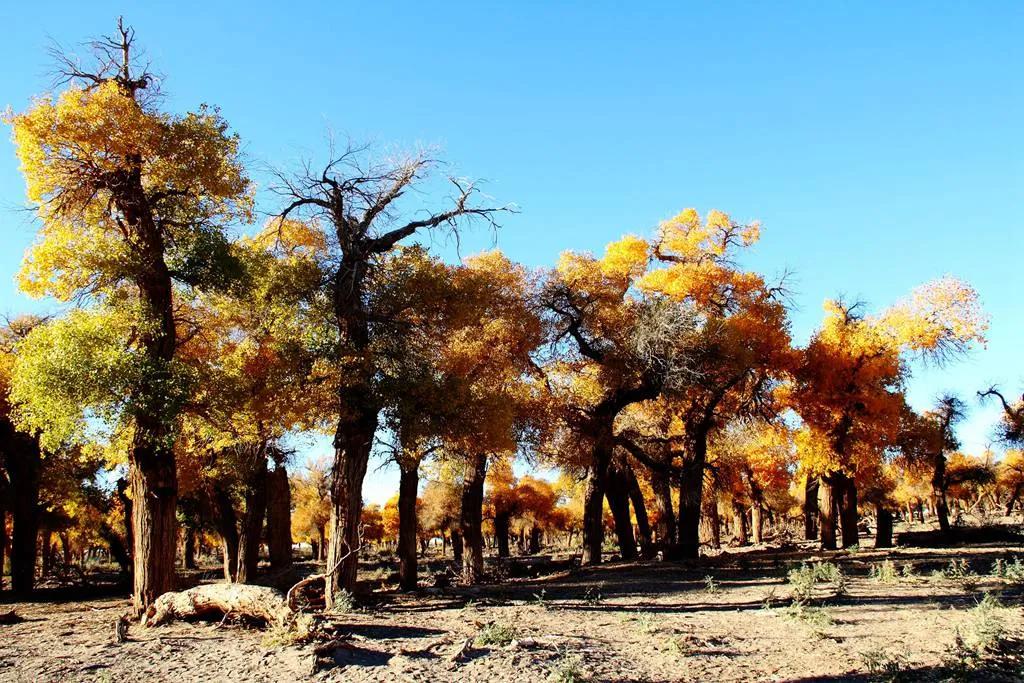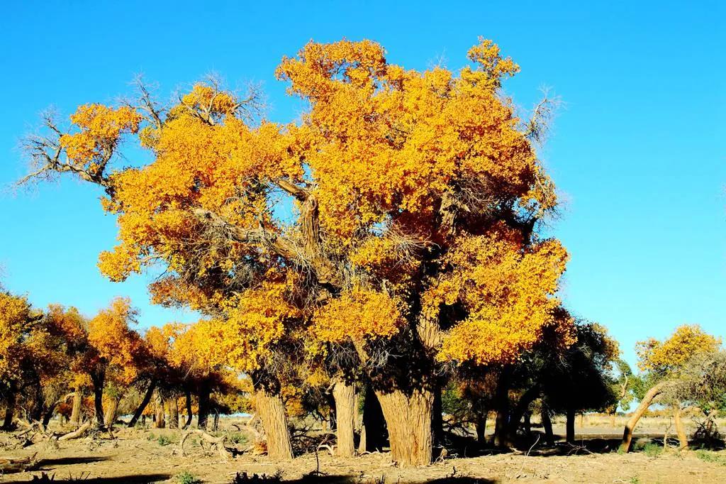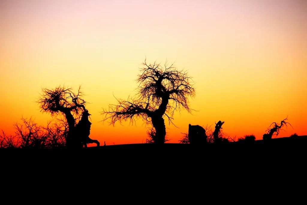 #秋日生活打卡季# #晒出你眼中最美的秋景# 【黑城弱水怪树林 枯木落日霞满天】20241019 额济纳因胡杨林名扬天下,遂成赏秋旅游热门。黑城-弱水胡杨林景区的枯木落日红霞奇景,更是备受追捧。 戈壁大漠,天青沙黄。金色胡杨,灿烂昂扬。天然风光,凸显大漠苍凉。大河奔流,弱水浩荡。河边芦苇,晶莹闪亮。蒹葭苍苍,演绎弱水情长。 更有小湖,散布河旁。胡杨环立,茂盛粗壮。湖水清澈,镜面清朗。倒影清晰,灿烂金黄。唯美画面,堪称无双。 怪树林内,枯木林立。千姿百态,千奇百怪。千年不倒,千年不朽,不屈不挠,胡杨精神,啧啧称奇。橘红落日,漫天红霞,枯木剪影,独具风韵。日落怪树林,风景不一般。 #一张图片证明你来过内蒙# #晒出你眼中最美的秋景#