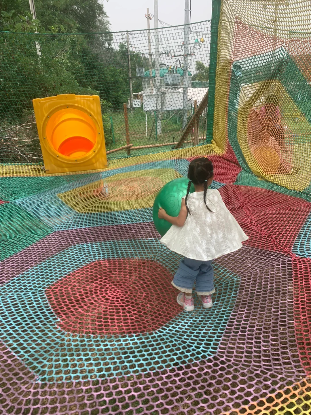 🛝无动力乐园:有一大片网兜蹦床,上面还有一些比较有挑战性的空中攀爬,适合大一些的孩子。草地上适合玩飞盘🥏和踢球⚽️的互动类游戏。旁边还有一些秋千,滑梯🛝挖沙,搭积木之类的💰也有一些是收费的项目:ATV越野,淘金小矿工,丛林寻宝,滑草!