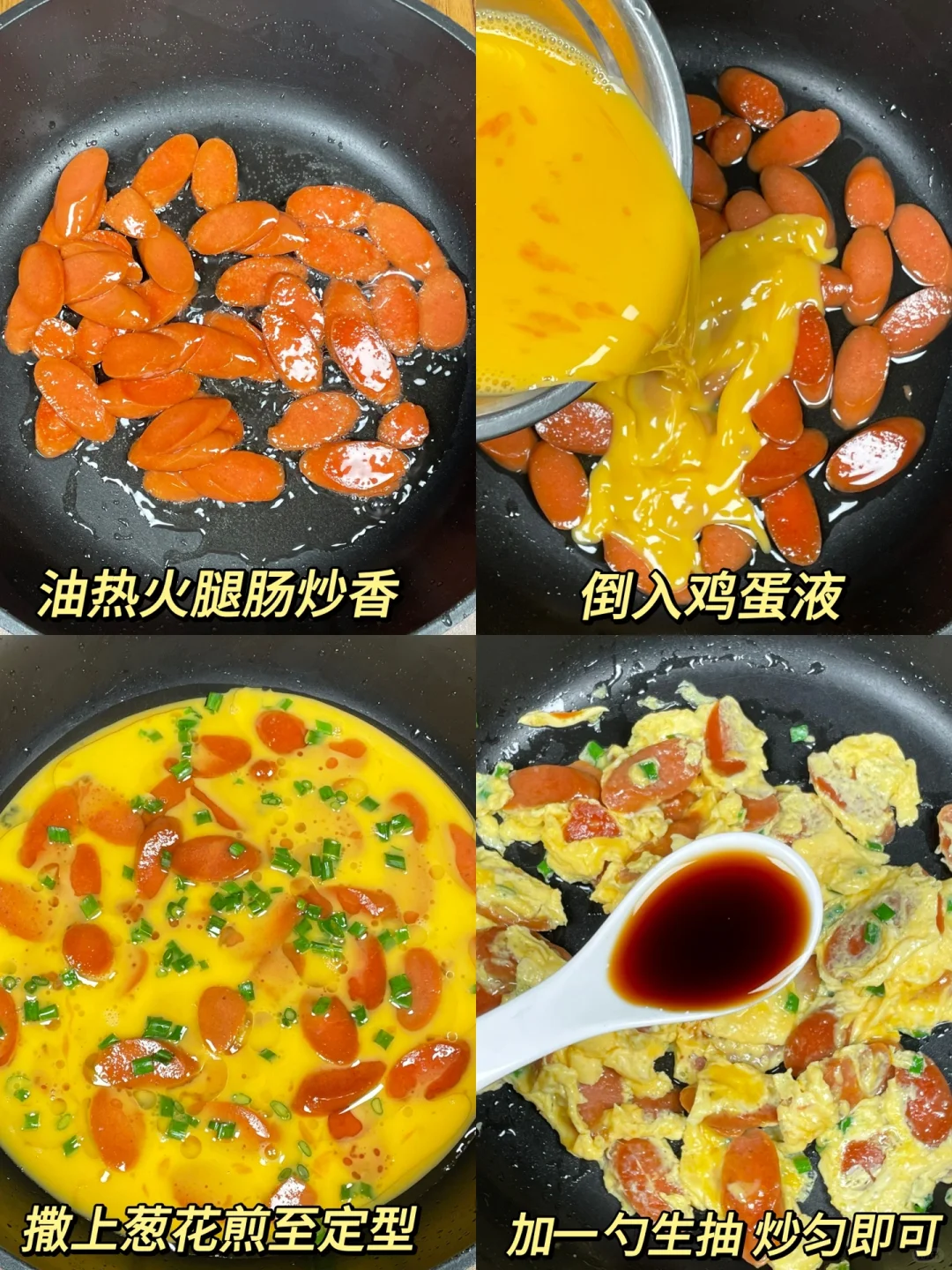 香喷喷的火腿滑蛋,大人小孩都爱吃[色色R] 鸡蛋嫩滑可口,搭配焦香美味的火腿,真的巨巨好吃!做法巨简单,一定要试试[黄金薯R][黄金薯R] [向右R]食材:鸡蛋➕火腿肠 [向右R]做法:如图所示!