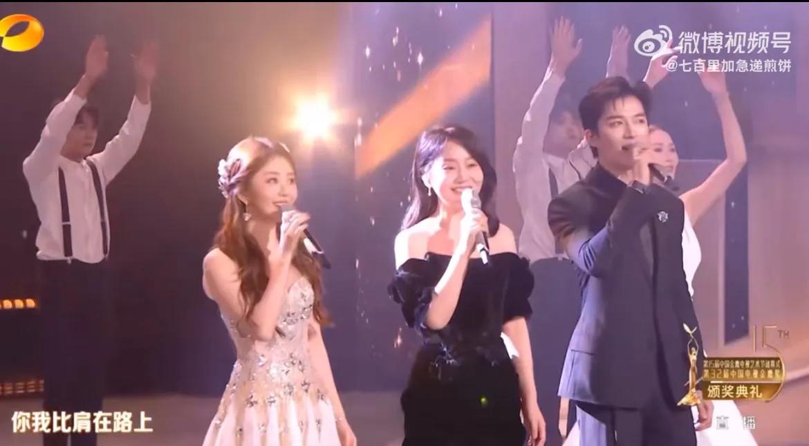 金鹰晚会,闫妮、谭松韵、王星越合唱《写故事的人》,被深深打动了,很感人的一个节目。#金鹰奖颁奖之夜# #电视文艺星光奖#