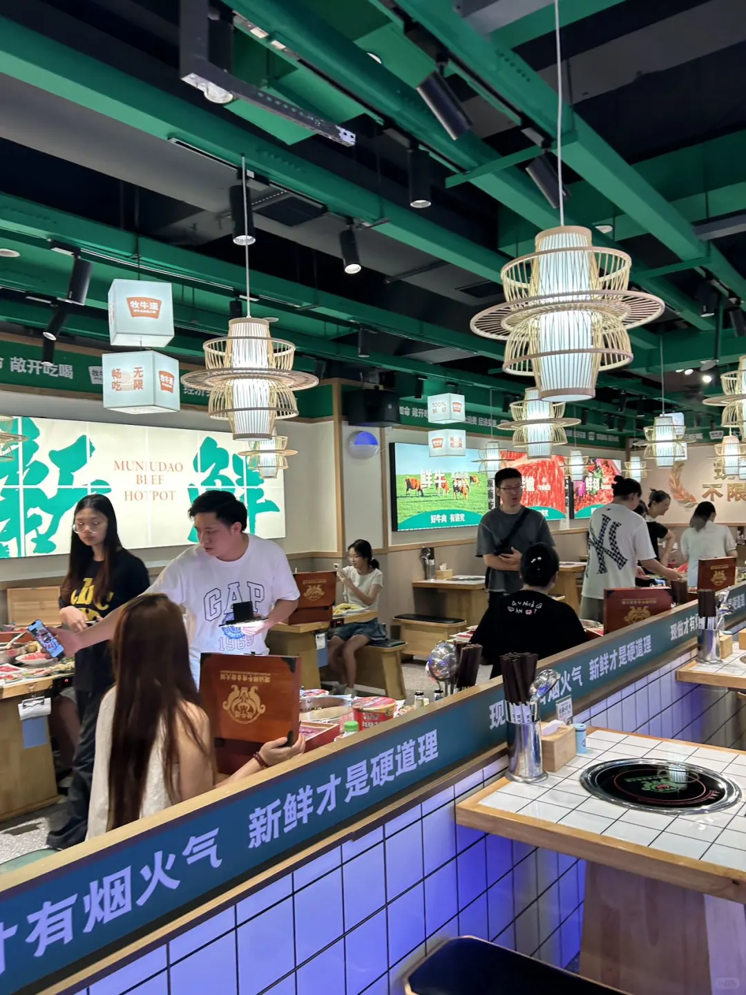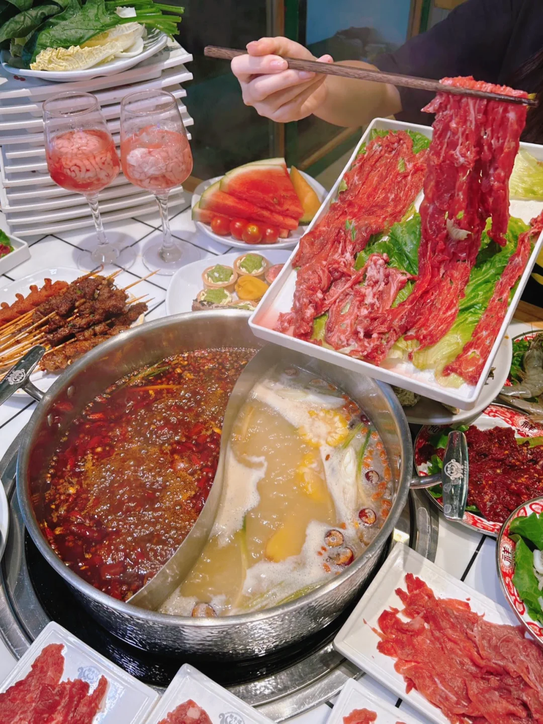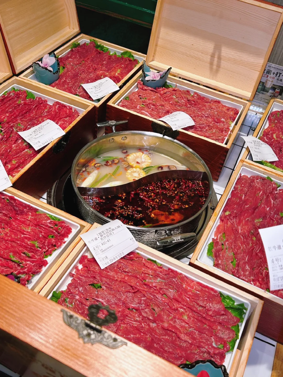 🌟来五一广场直奔这家牧牛道自助火锅店,被同事反复种草,今天是来拔草的✌️一点没有踩雷,很多人,烟火气十足🔥 🌟店内菜品丰富,有现切的黄牛肉,吊龙,盒装牛肉、五花肉,酥肉,还有炸串,新鲜蔬菜、水果,饮品…很是丰富,份量也很足👍 🌟鸳鸯锅底,各种食材放在锅里煮熟就可开吃,香辣入味,沾上特制蘸酱、口感更是丰富好吃😋再来份冰淇淋🍦,更是解油又解辣👍👍