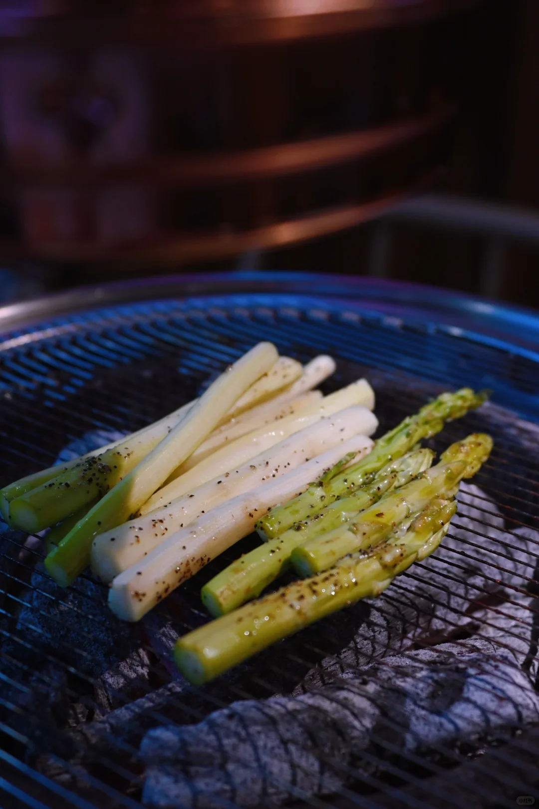 单看价格都不贵,但是点着点着总价也不少。调味过的肉比较好吃,花生漏勺烤肉比较淡,全靠蘸酱调味。芦笋倒是挺嫩挺新鲜的。牛舌我也很爱,切得很厚。