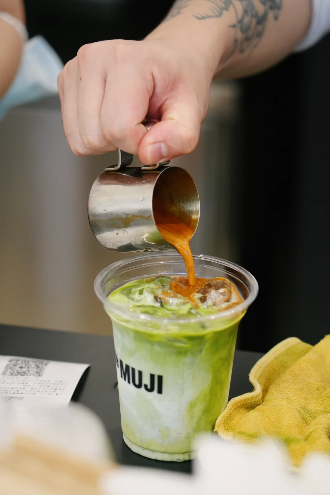 无印良品涉足餐饮倒是不让人稀奇,餐厅的松饼🥞就挺让人念念不忘的。 ◽️ 有常规的意式,特调是两款抹茶的+一款冰淇淋,三选二有套餐,加赠一款苏州限定的徽章,蛮精致的,所以我看大家基本上选的都是这个套餐。抹茶特调是椰青水+浓缩,还有一款绿野仙踪就是抹茶拿铁+浓缩。整体口味就是,Manner换了MUJI的杯子。 ◽️ 周末下午六点左右去的,排小队,餐品也挺充足的,整体还是挺有秩序的。过去凑个热闹还是不错的。 🏡:Café MUJI 📍:仁恒仓街