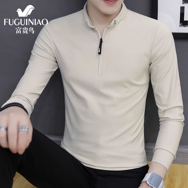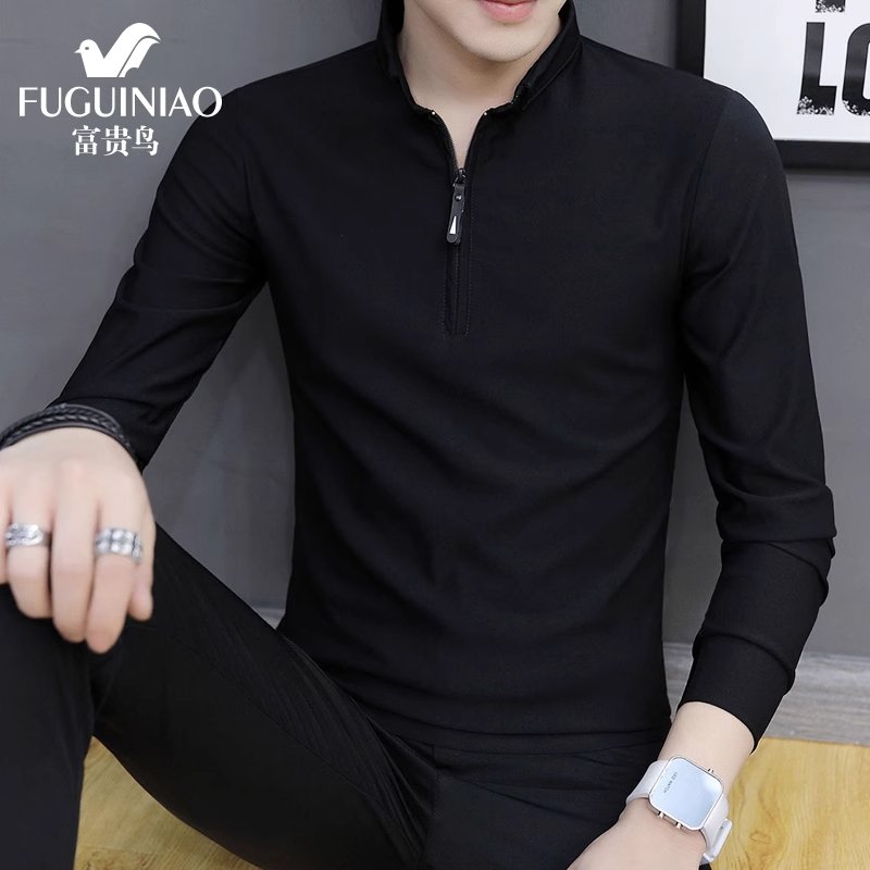 富贵鸟长袖t恤男士春秋季新款潮流修身打底衫立领polo衫男装