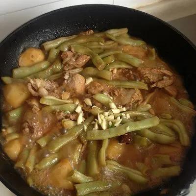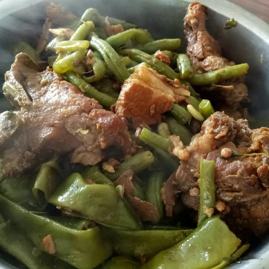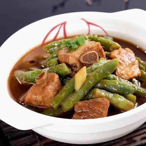 #分享我的拿手菜谱#标题:《东北排骨炖豆角:香到骨子里的拿手菜》 亲爱的朋友们,今天我要给大家分享我超级拿手的一道东北菜——排骨炖豆角,保证让你馋到不行! 先准备好新鲜的食材,精排适量,切成小段,一定要新鲜才有好味道;豆角呢,咱就选那种油豆角,一把就够,摘洗干净掰成小段;再准备点葱姜蒜,八角、桂皮也来一点。 排骨冷水下锅,加点料酒,水开后煮个两三分钟,把血沫煮出来,然后捞出来冲洗干净。 起锅热油,油热后放入葱姜蒜、八角桂皮炒出香味,接着把排骨倒进去,翻炒到表面微微金黄,这时候那肉香就开始飘出来啦! 随后放入豆角,大火不停地翻炒,直到豆角变得翠绿。 接下来开始调味,倒上两勺生抽,一勺老抽上色,再来点蚝油提鲜,撒上适量的盐和白糖,翻炒均匀。 然后加入没过食材的热水,大火烧开后转小火慢炖,大概 40 分钟左右。 在炖煮的过程中,那香味越来越浓,整个厨房都被这香味填满。 等到汤汁变得浓稠,排骨软烂脱骨,豆角也熟透了,就可以大火收汁啦! 盛上一碗米饭,浇上这香喷喷的排骨炖豆角,一口下去,简直是人间美味。每次我做这道菜,家里人都吃得肚子滚圆,直夸好吃!