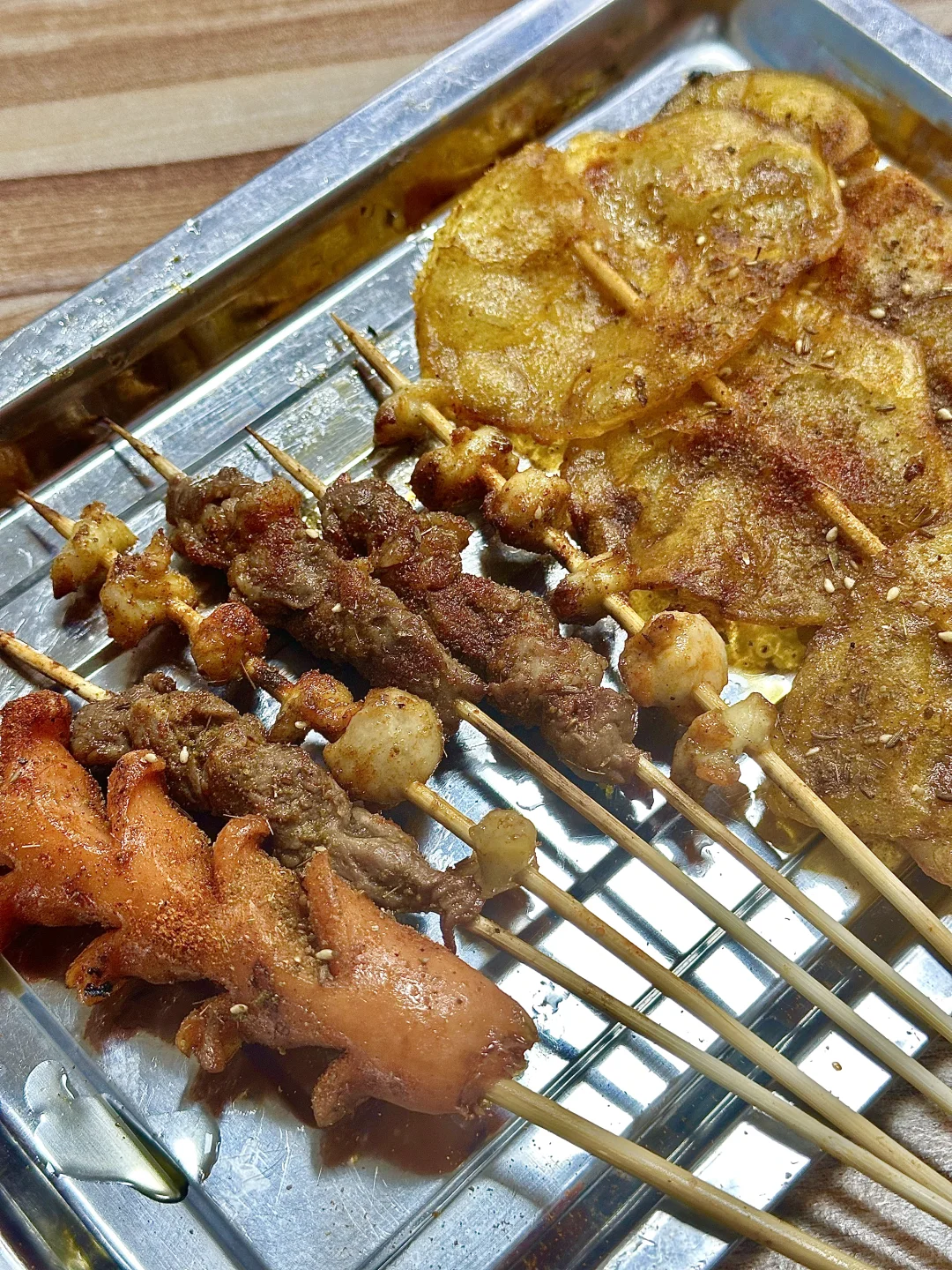 本来只是想吃他家的烤鸡架,没想到还有烤串和🥟。