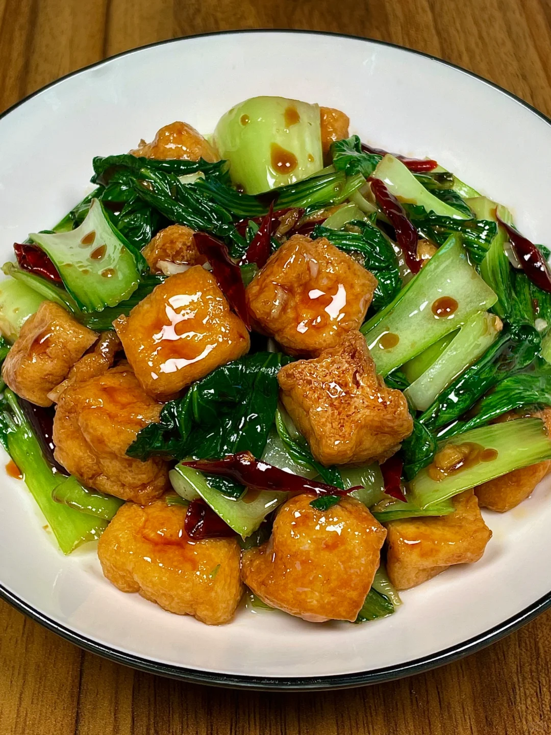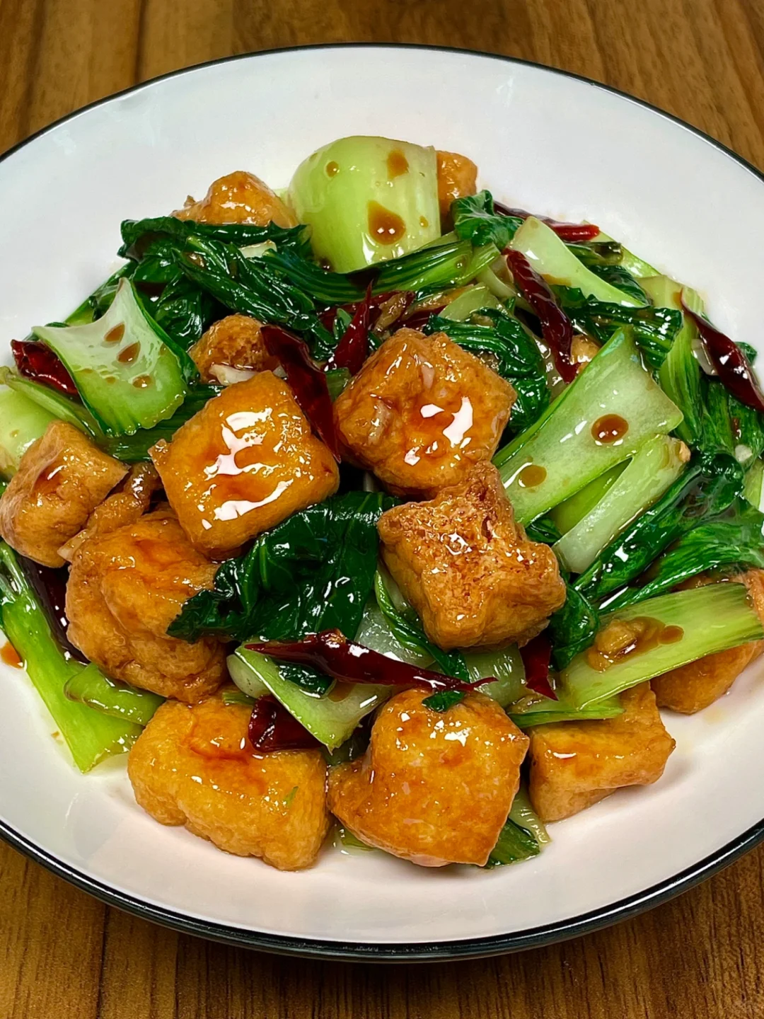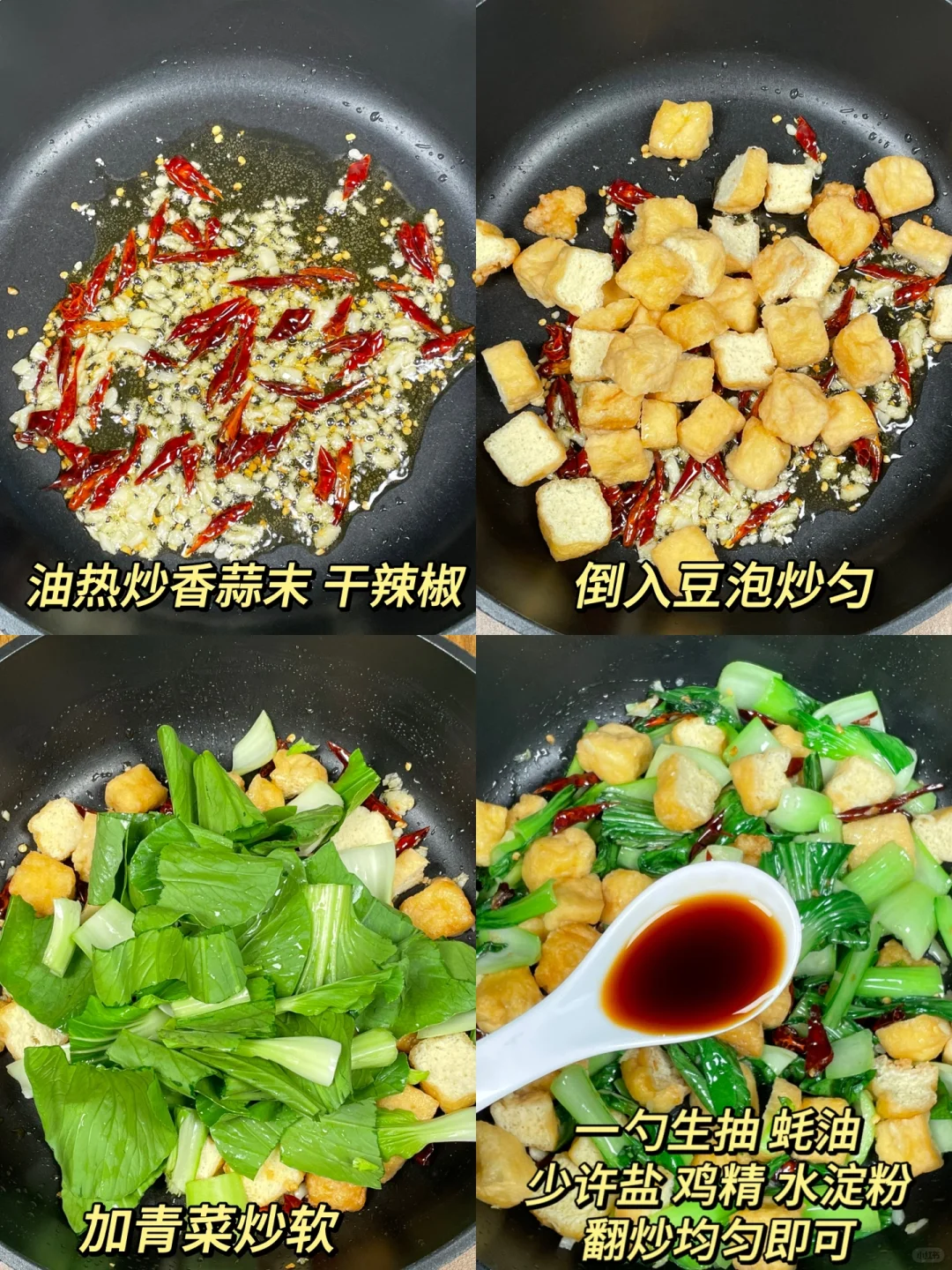 巨好吃的豆泡炒青菜!求你们去做!! 青菜脆爽可口,豆泡吸满汤汁,鲜香入味,香香辣辣好好吃啊[色色R][色色R]配米饭能炫两大碗!快安排起来吧~ [向右R]食材:豆泡➕青菜➕蒜末➕干辣椒 [向右R]做法:如图所示!