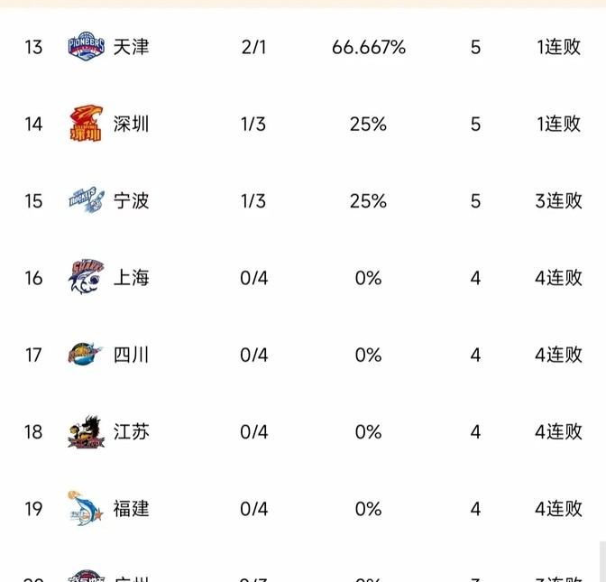 辽宁队又第一,这是要蝉联冠军的节奏?山西队第二,这是哪来的黑马?北控才第七,是不是有点儿掉链子?广东队竟然第十二,这是怎么了?上海队第十六,简直不敢相信!广州队倒数,唉,这不是家常便饭吗?辽宁球迷乐坏了,其他队的球迷,心里可真不是滋味儿。