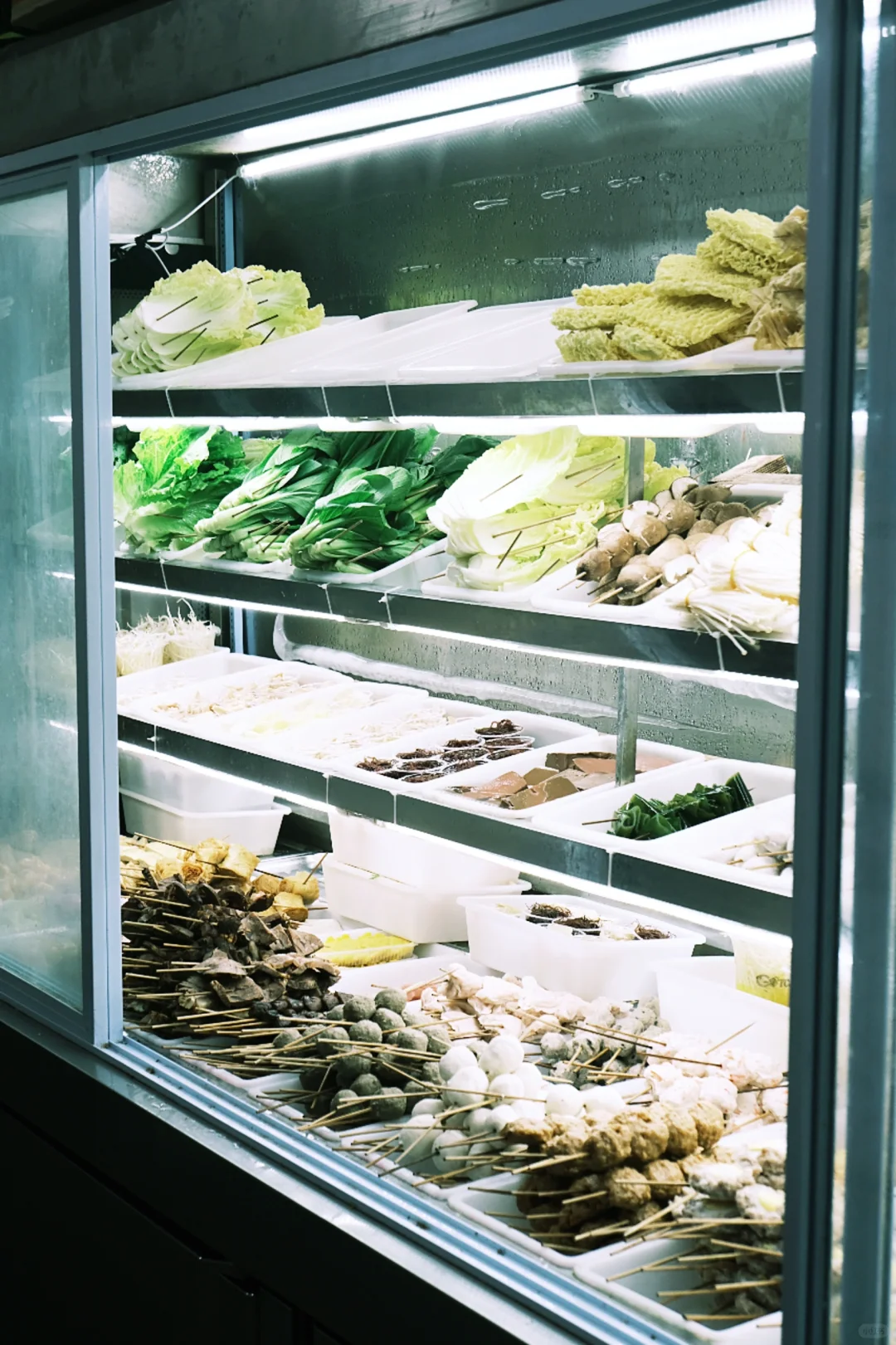 被带火的网红麻辣烫铺子,出品更像是印象中麻辣拌,咸甜辣钩织成独特的酱汁。冰柜里的菜品选择很丰富,也有些当地特色的团子,选好自选菜品还能加主食,有方便面、粉丝、滑肉这几种,量真的特别多,端上来满满一盆,拿菜的时候可以悠着点。