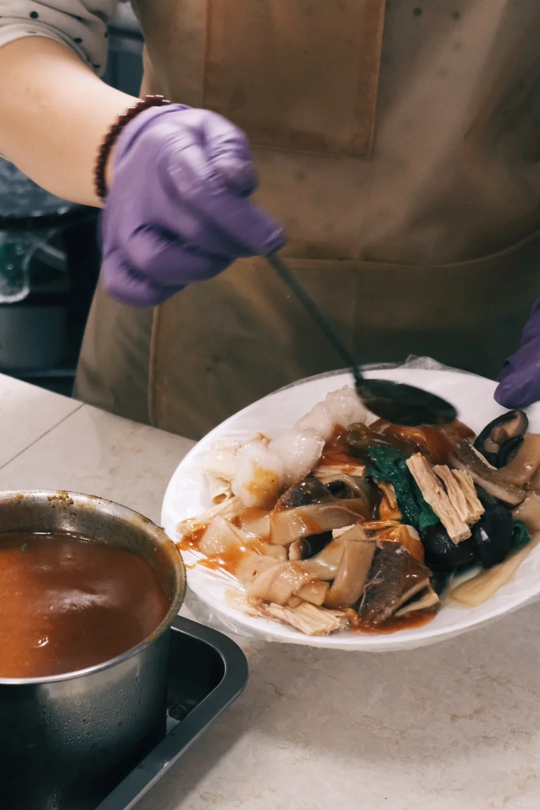 油豆腐塞肉和芋头我最爱,尤其是芋头,我本来不大爱吃,在这里却太配店里的特色酱汁。一定要加上多多的榨菜,大锅现炒,又脆又有锅气。