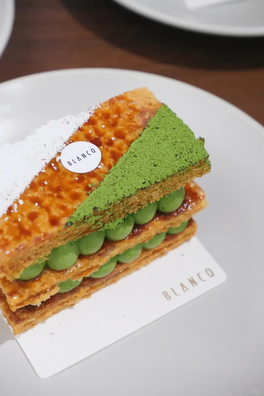 开心果布雷斯特不用赘述的王牌产品,提溜了三块回家带给朋友。柚子塔够酸够劲儿,松子仁的加入还是一如既往完美。这次还堂食了抹茶拿破仑,酥皮层酥脆一碰就碎,最上面一层是苦焦糖层,内馅儿应该是抹茶甘纳许和酸柚子酱,本以为单调的抹茶会很甜又清苦,这一下子就被平衡了,还保留了抹茶的清苦,Blanco你是我永远的神。