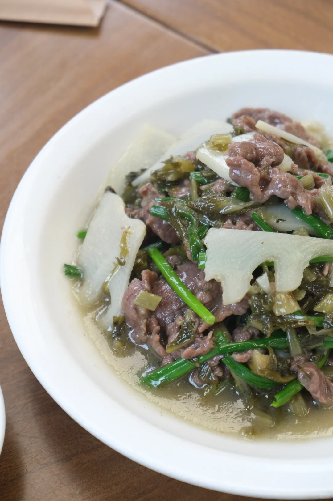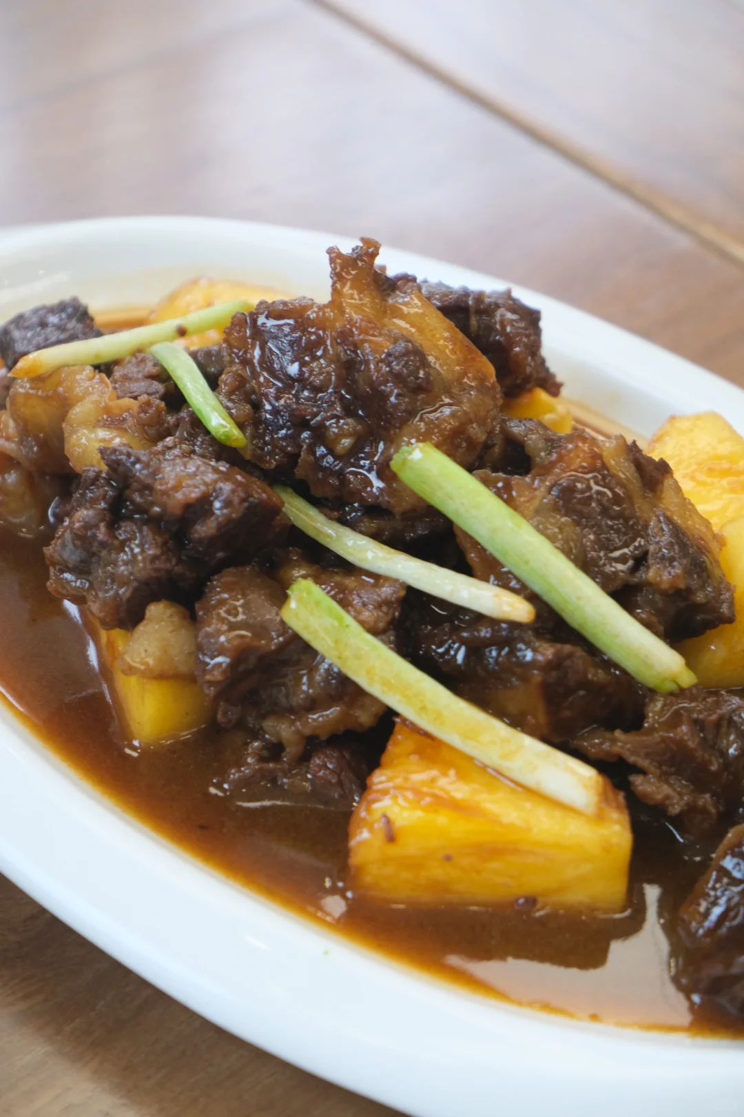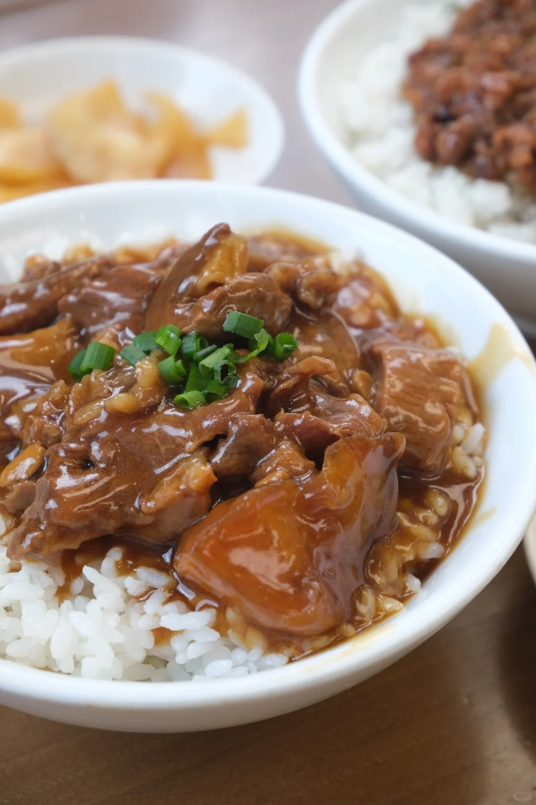 确实是好吃的……虽然菜品的选择不多,但确实是现炒有锅气,口味也把握得极好。先说主食,感觉卤肉饭比土豆牛腩更好吃,可能是因为口味更重一点,米饭拌汤汁太美妙了。雪菜牛肉一定要点,里面还有脆脆的笋片。菠萝牛腩的牛腩很大块,而且是肥瘦相间的那种,凤梨也很多汁。收尾点了海鲜豆腐汤,鲜的,撒了芹菜末更配了。