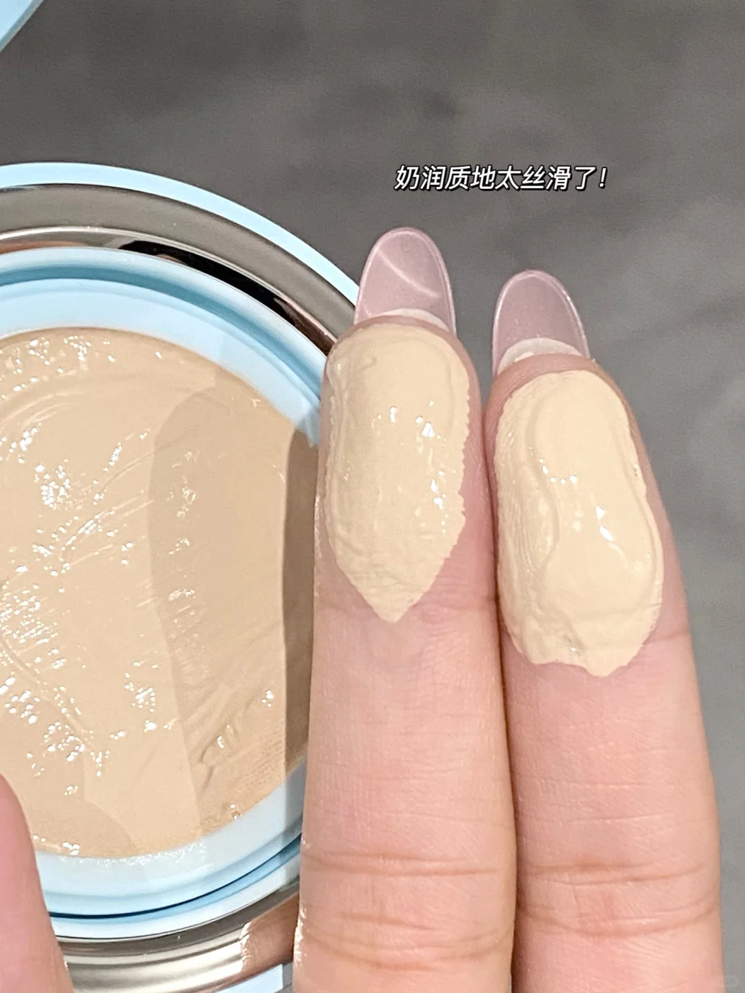我竟然才发现彩棠出了奶皮气垫! 这冰透感翠青色外壳好像一块晶莹剔透的奶皮! 颜值就狠狠鲨我! 质地也是超润的奶油感 感觉不用保湿打底直接 上脸都还绰绰有余 干皮又享受上了 上妆后是3D柔光奶油肌的妆效 好漂亮的光泽感 而且瑕疵基本都遮住了 真就像是在脸上敷了一层奶皮一样 牛奶皮肤分分钟拿捏! 一天下来持妆力也很奶思 太好了!这个秋冬我们有救啦!
