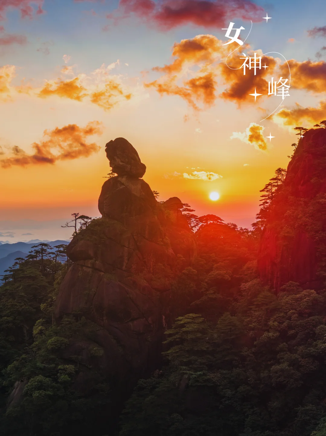 东部金沙索道→神驼峰→巨蟒出山观景平台→禹皇顶→福寿门→日上山庄→摩崖石刻→一线天→玉台→东方女神→ 女神栈道→东部金沙索道