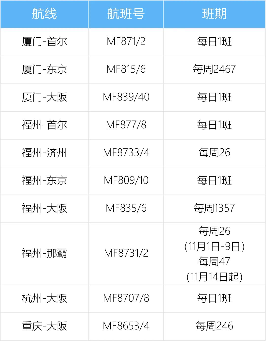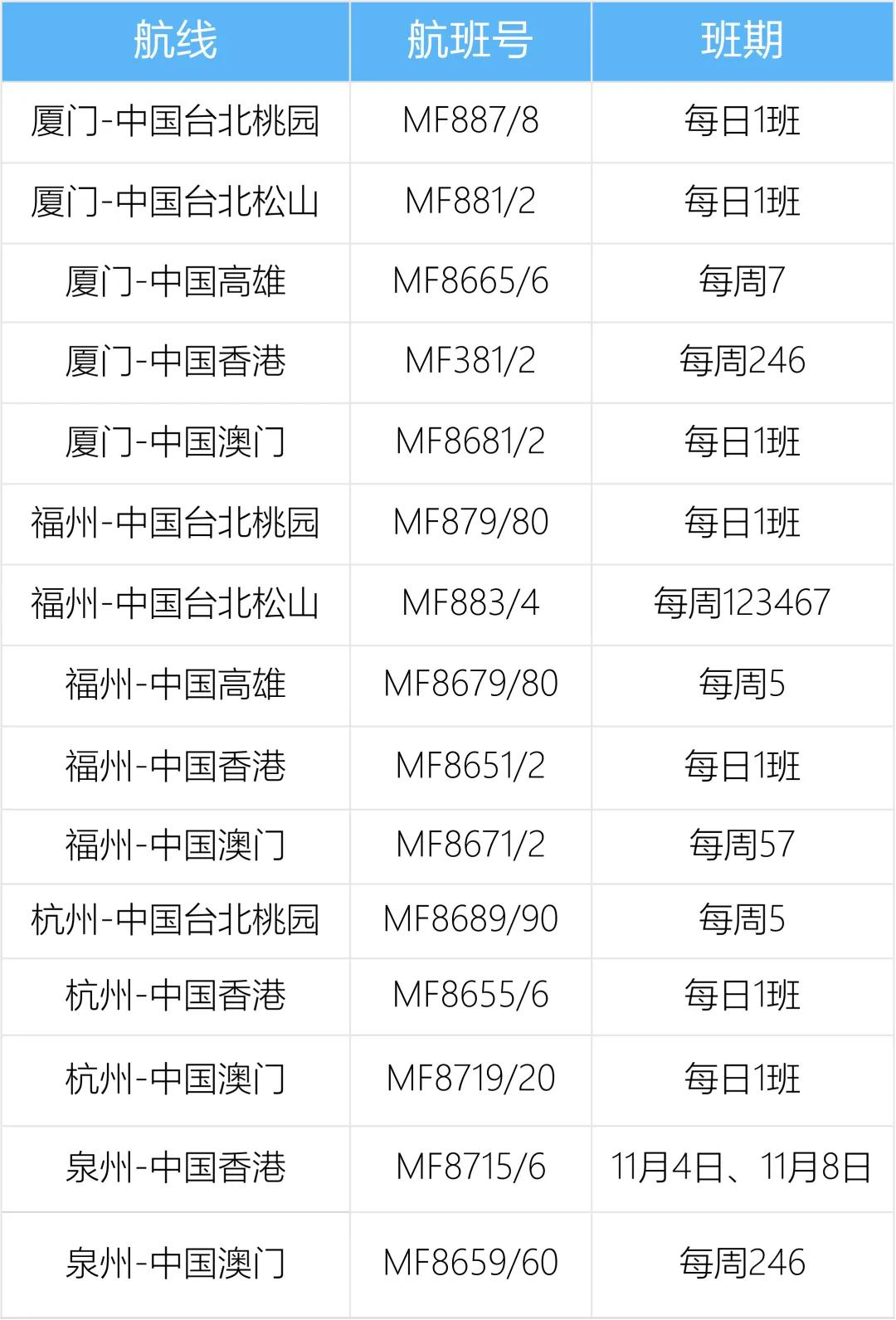 厦门航空发布2024年11月国际及地区航班信息! #国际航班#