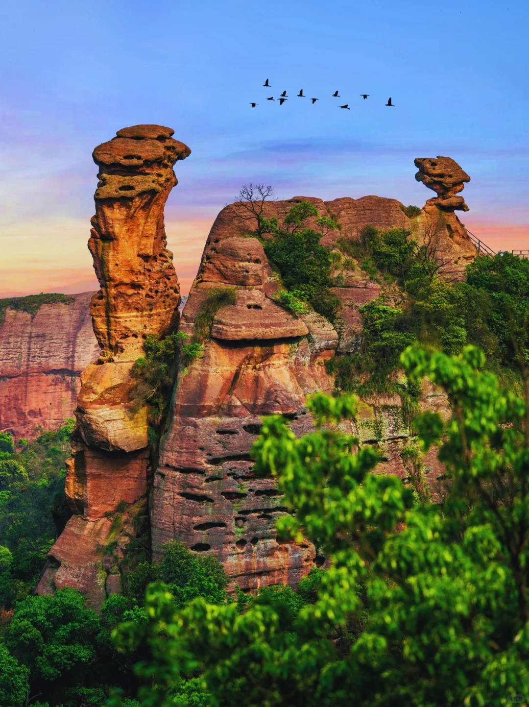 龟峰共有36峰,集“奇、险、灵、巧”于一身,素来有“江上龟峰天下稀” “丹霞模式标本”的誉称!有精雕细刻的灵巧,又有刀削斧劈的粗犷,简直就是宝藏丹霞秘境!🌄