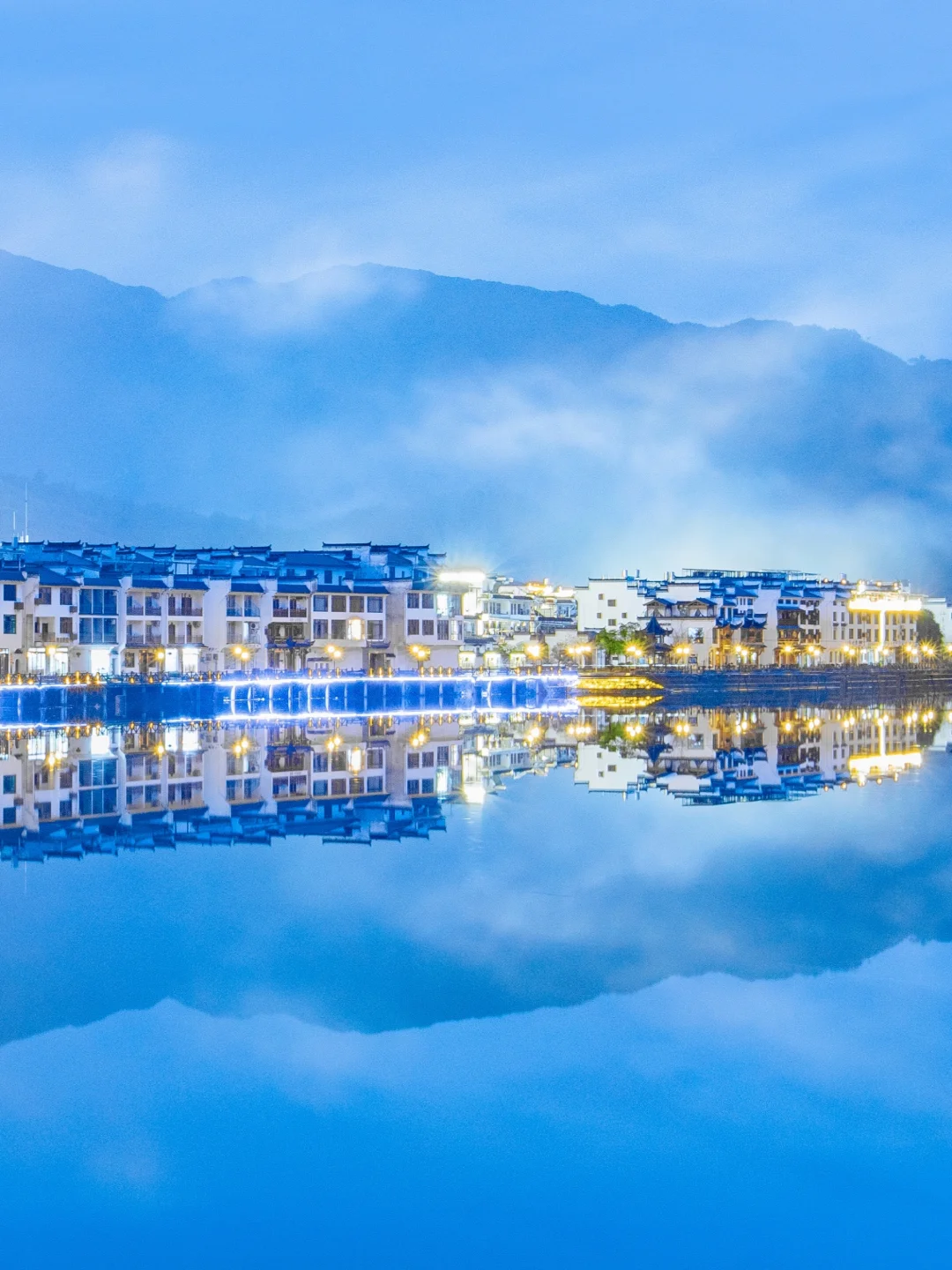 🌟原来江湾的夜这么绚烂!澄澈的蓝水天一色~