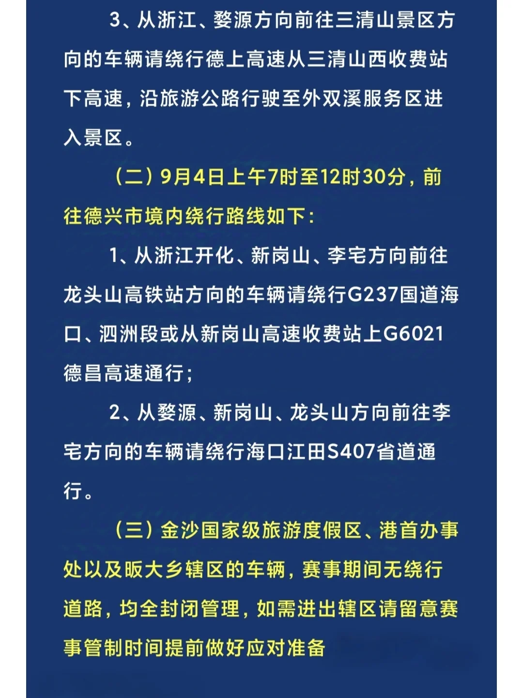 🌟9月4日7时至14时,三清山金沙游客广场—三清山旅游公路—S204(德兴市三木源口)—S407(德兴市李宅路口)—三清山旅游公路—三清山逍遥谷停车场处公路两侧1公里范围内,禁止未经批准的无人机等“低慢小”航空器在自行车大赛活动区域及比赛路线、路段升降和飞行航拍等活动!宝子们积极配合呀~