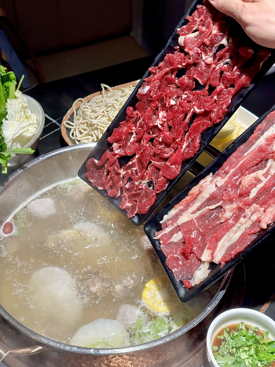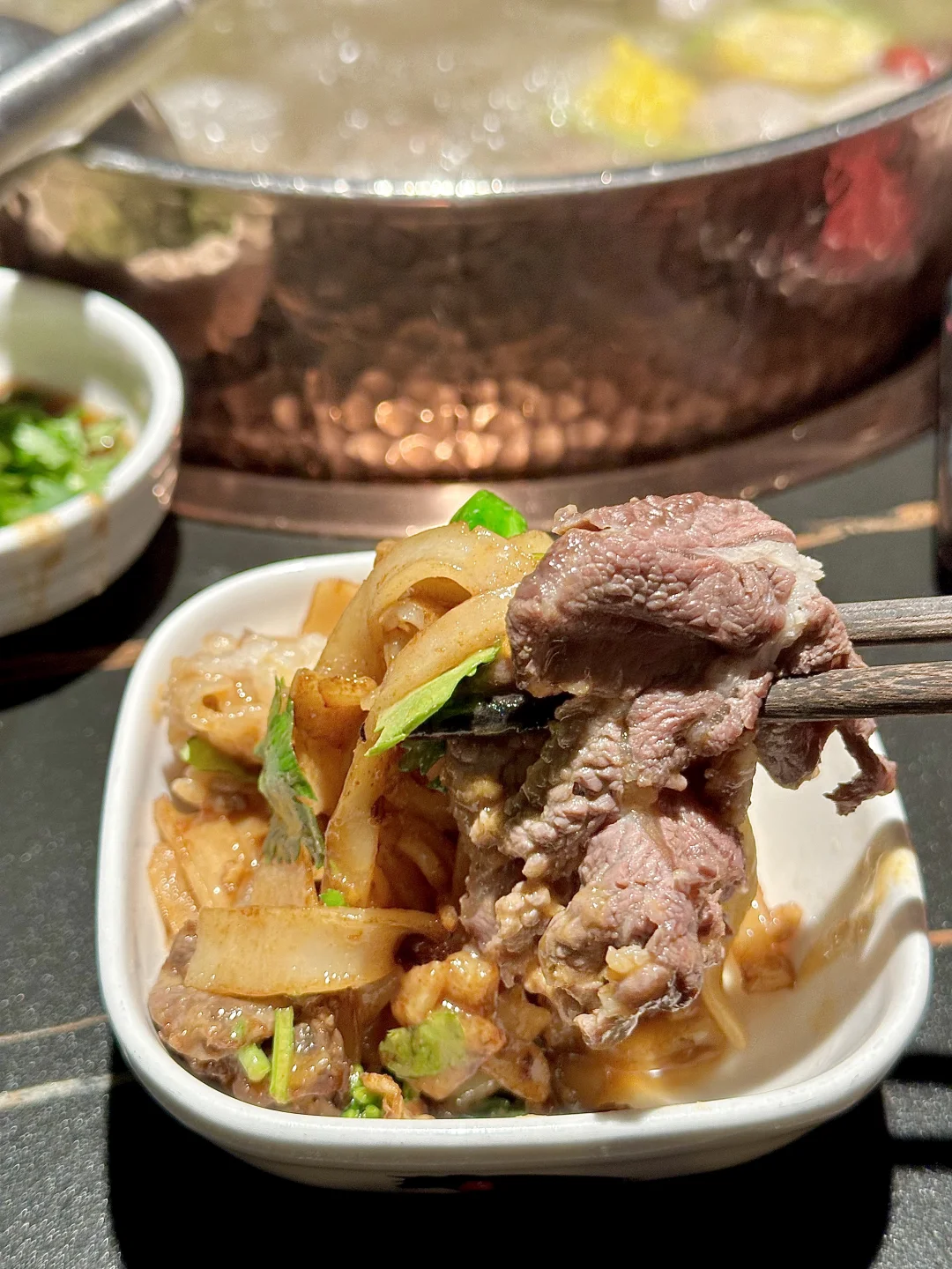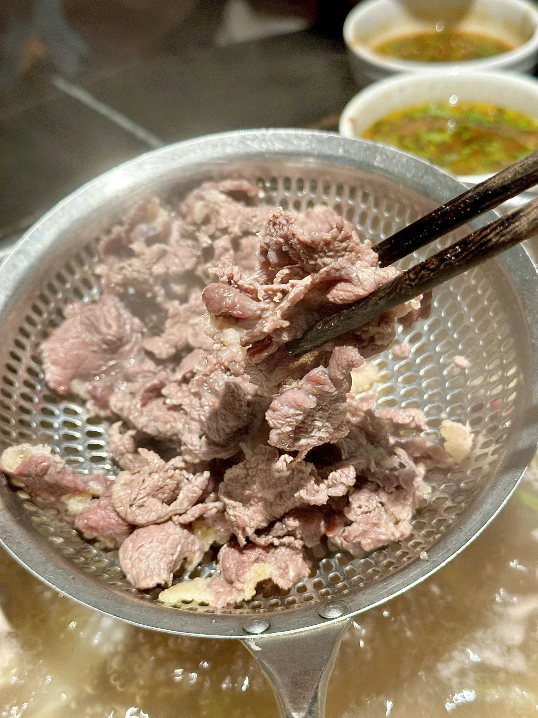 又是在特房吃饭的一天,有个住特房的闺蜜真快乐!🥰 今天打卡牛里合潮汕牛肉火锅。 他家牛肉好新鲜,明档现切,每一盘都铺满。 我们买的2-3人套餐,加了份炒河粉和两盘肉,吃不完 饭量小的姐妹,3个人吃这个套餐足够了。 这是继我们去汕头吃牛肉火锅回来zui满意的牛肉火锅了 口味不会比汕头的差,环境也很舒服。💗 现场服务巨满意,我们坐的比较偏,服务员远处视线内等待随时服务。👍🏻👍🏻