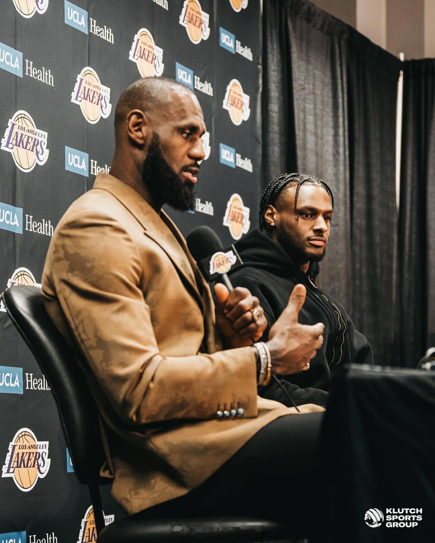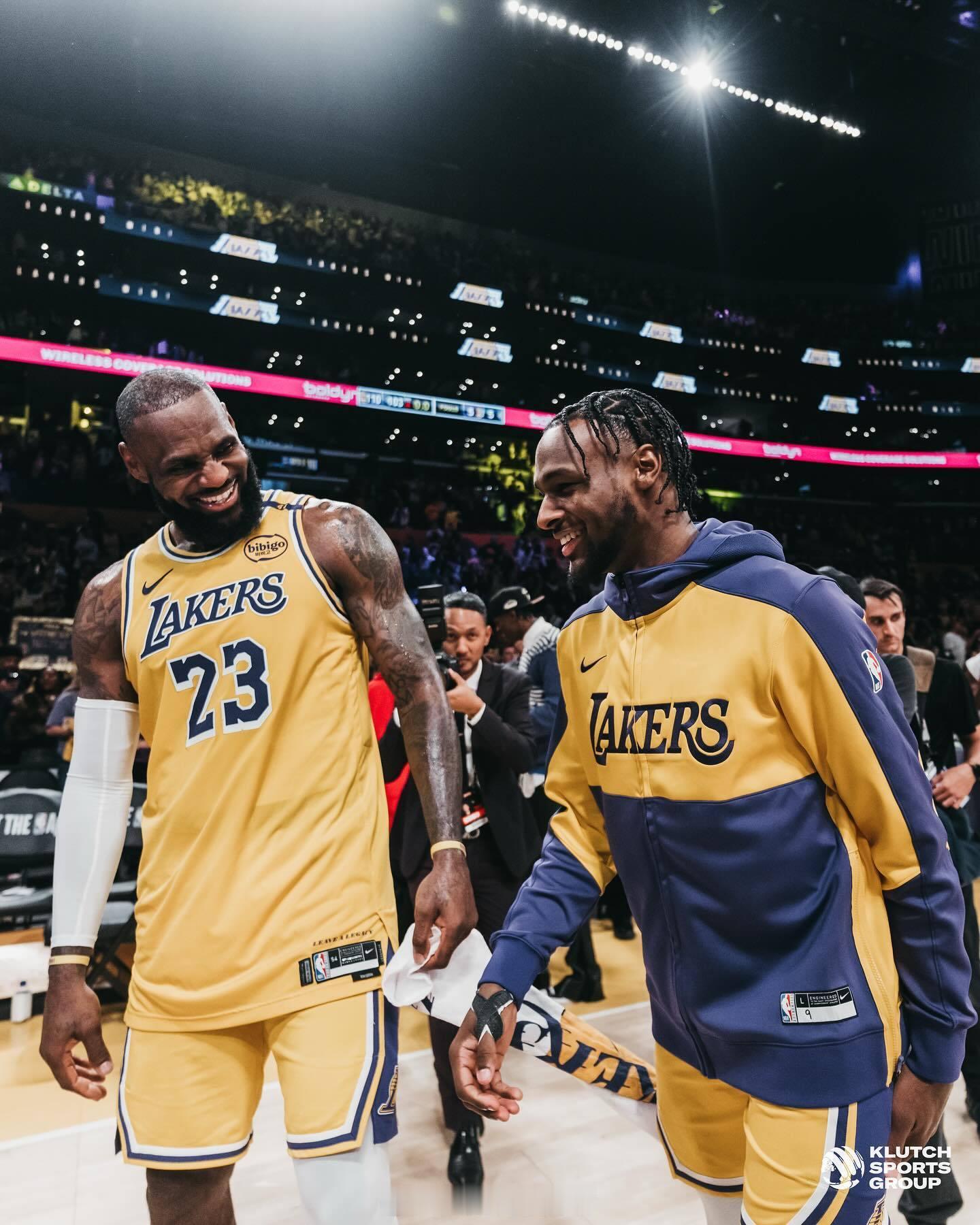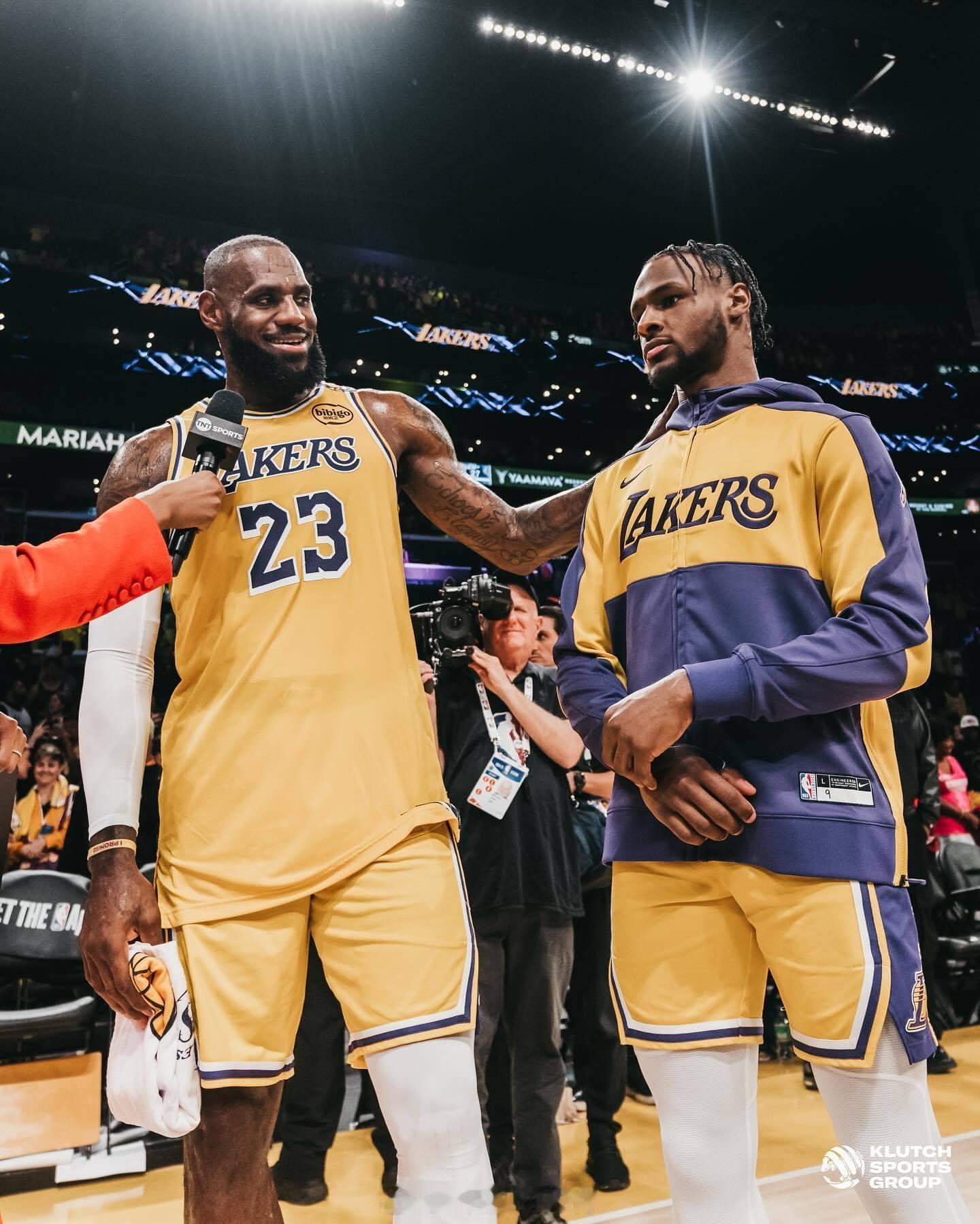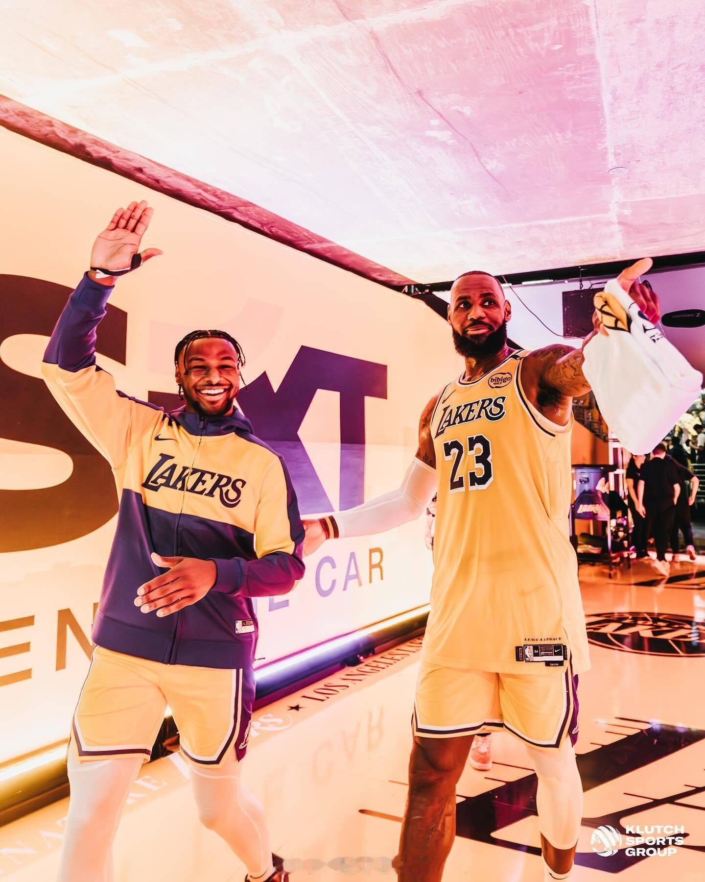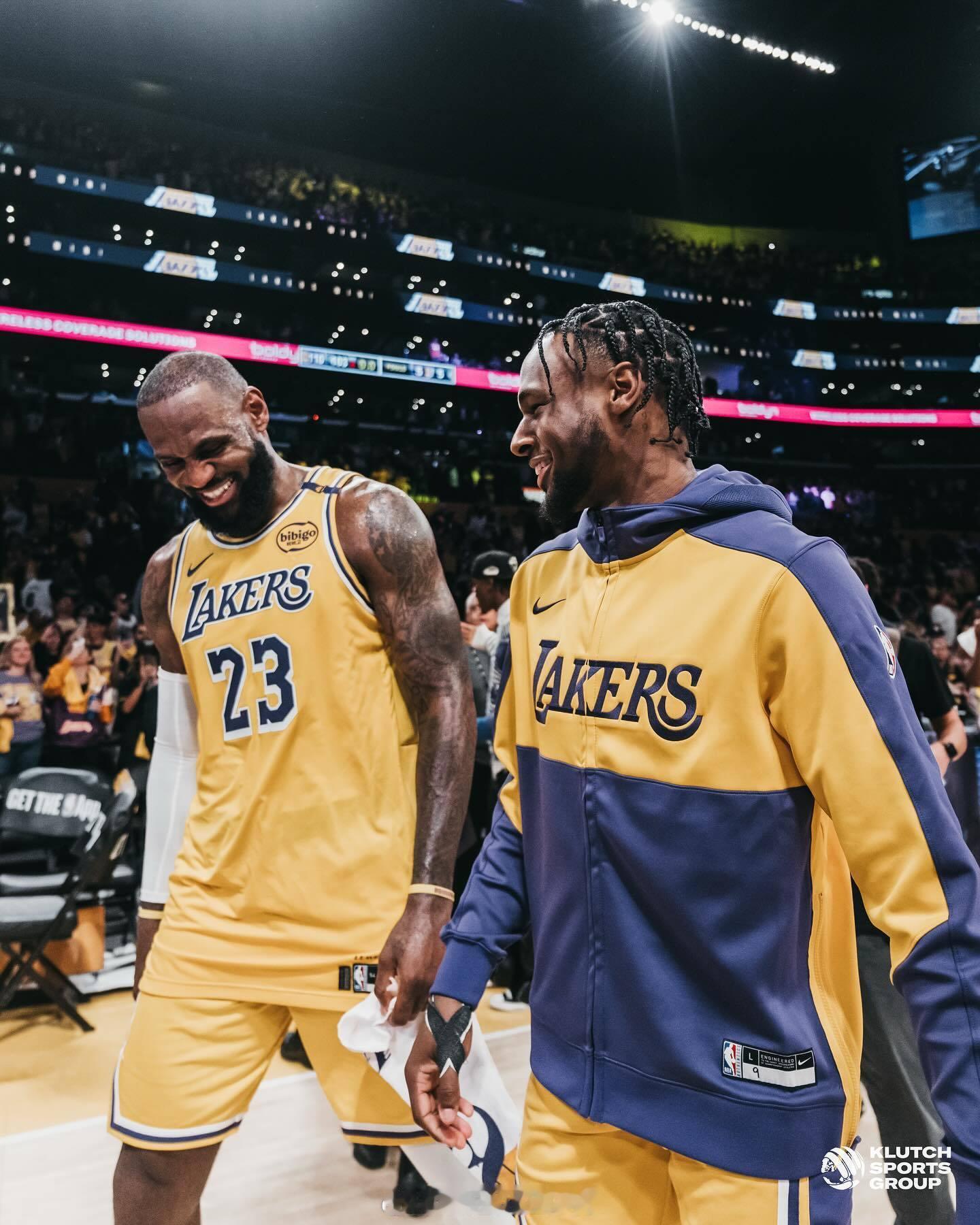 勒布朗詹姆斯赛后更新了自己ins社媒的一组#詹姆斯布朗尼父子同台# 的相片#nba开新大集#