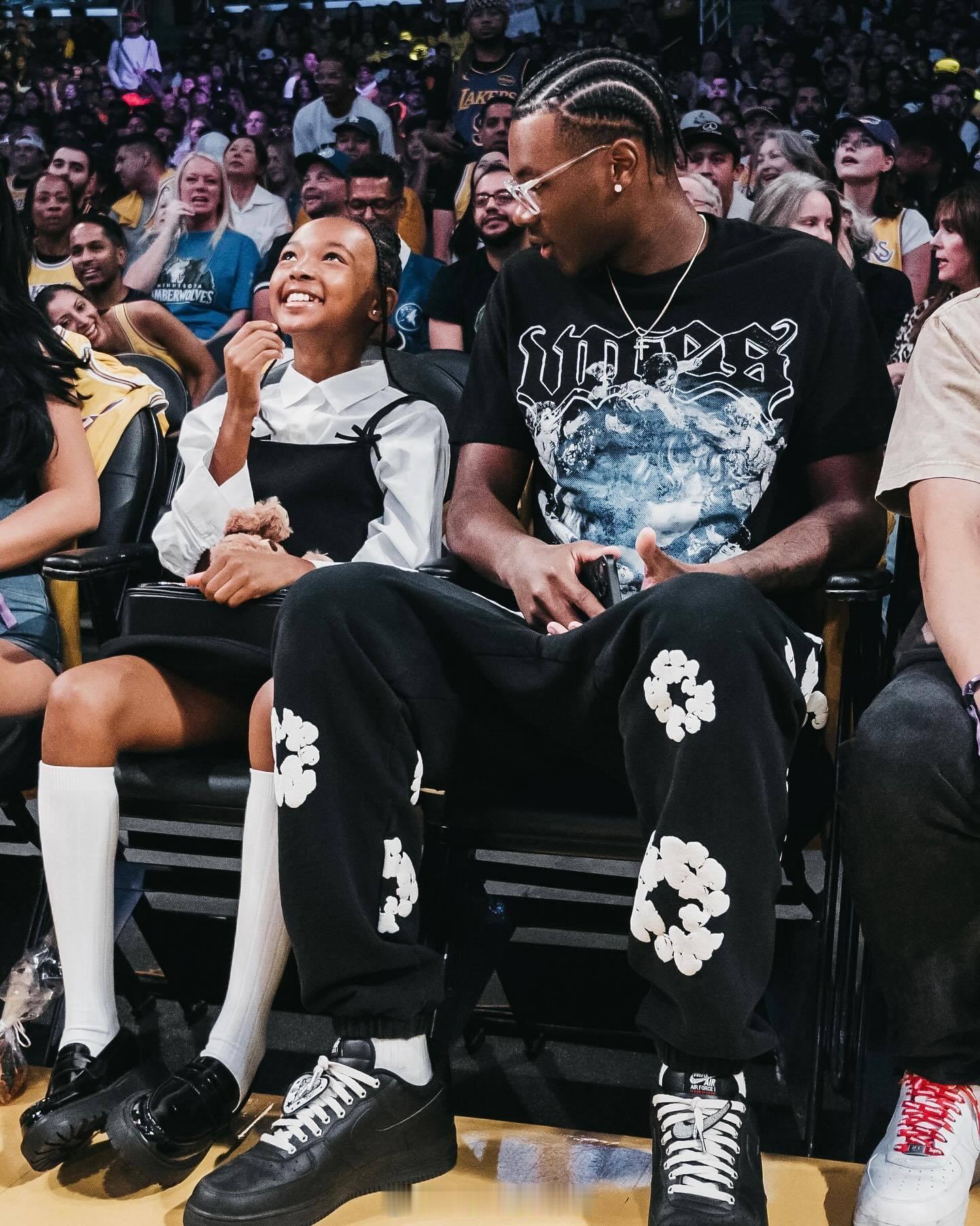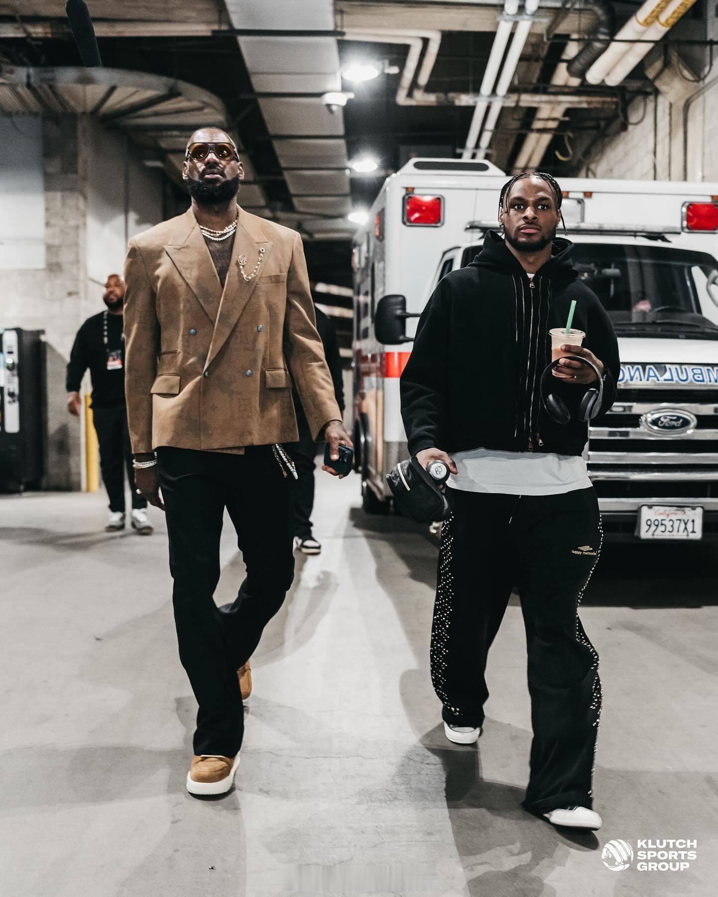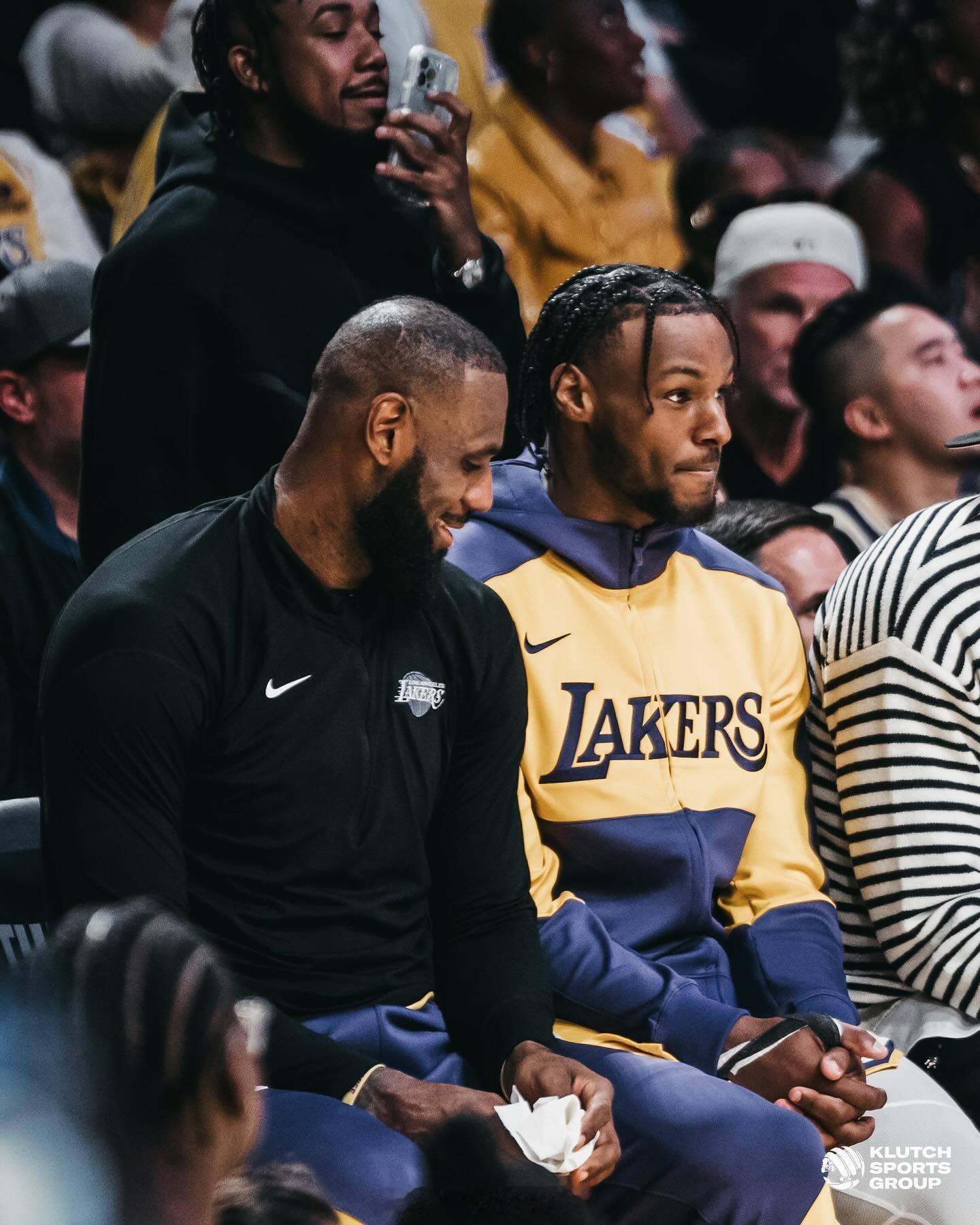 勒布朗詹姆斯赛后更新了自己ins社媒的一组#詹姆斯布朗尼父子同台#的相片#nb